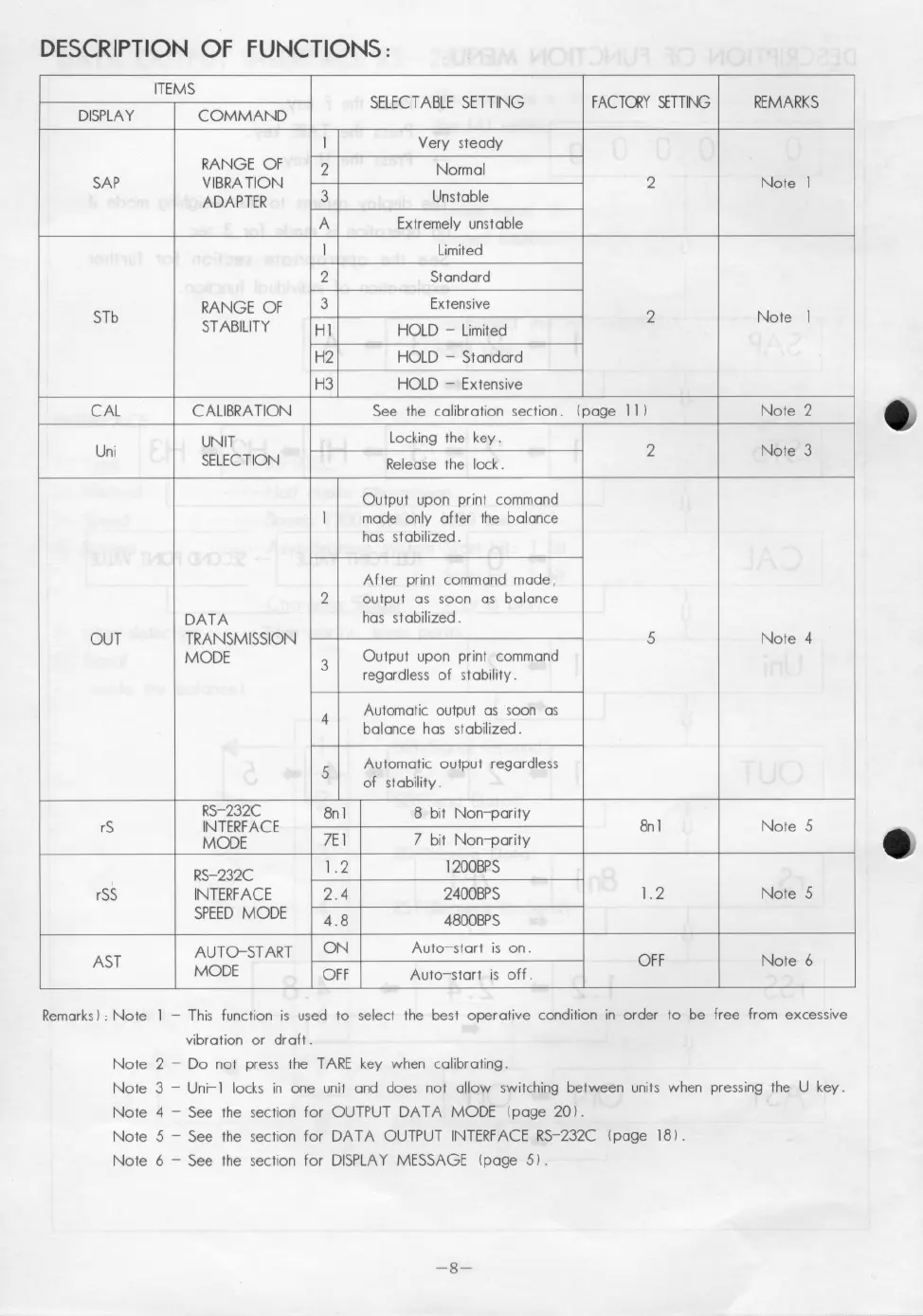 Note 5 - See the section for DATA OUTPUT INTERFACE RS-232C (page 181.