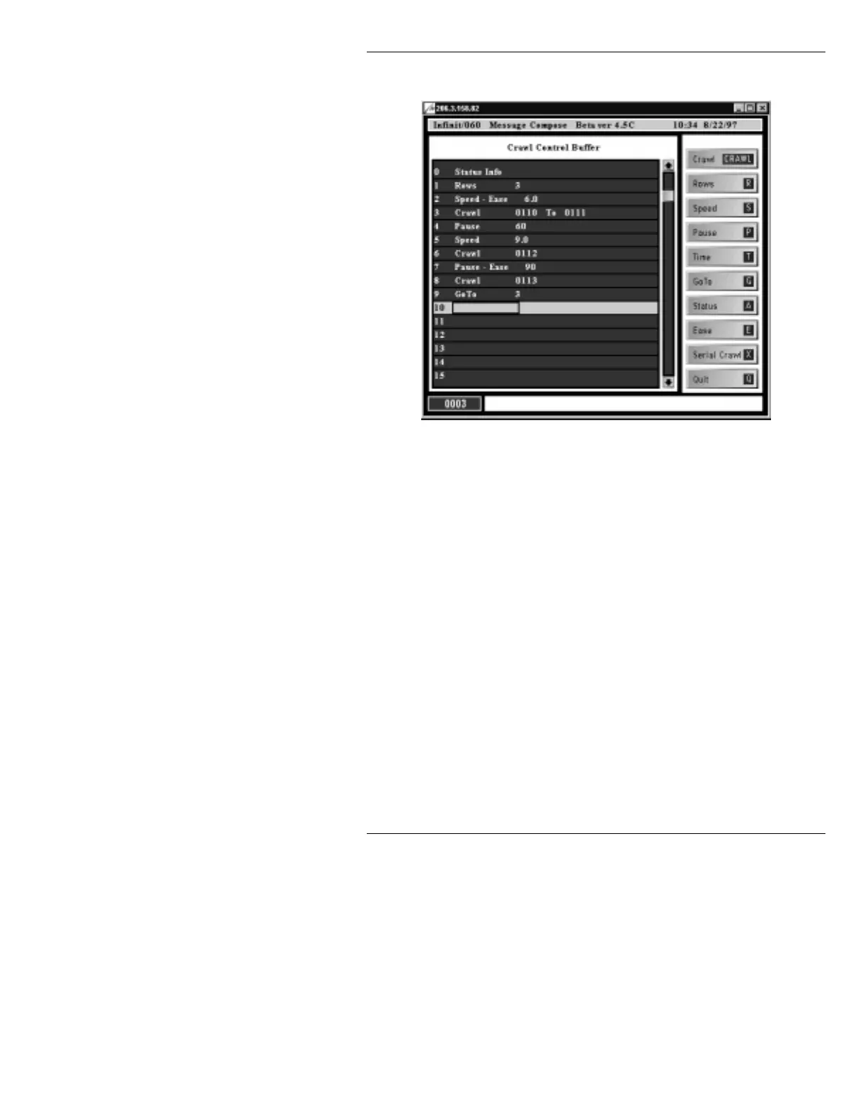 • Press CNTL to exit the Crawl Control Buffer.