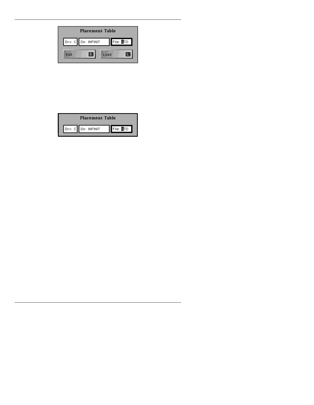 following Placement Table window (Figure