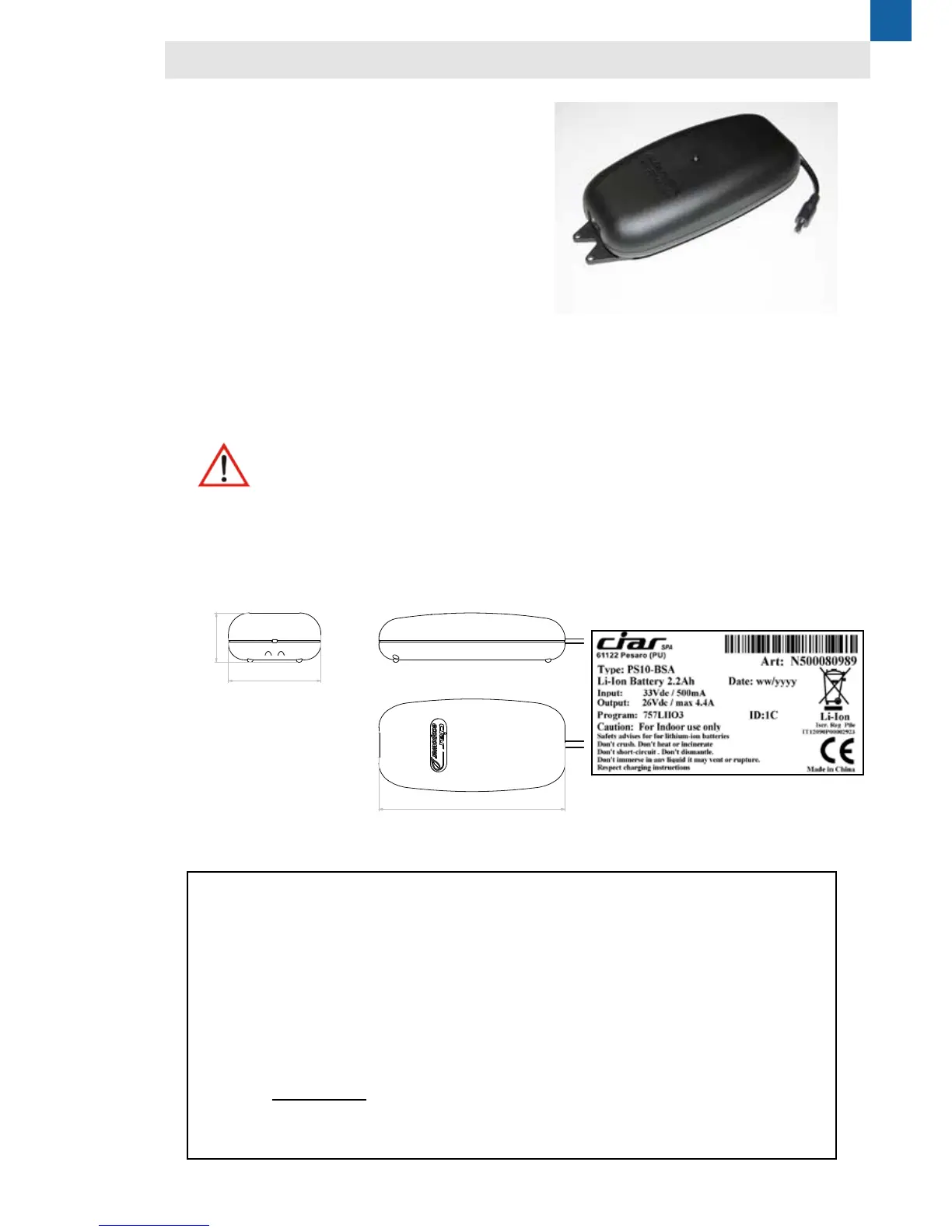 to the charger connection (see “Chapter: Instruction for PS10BSA recharging” of this manual).