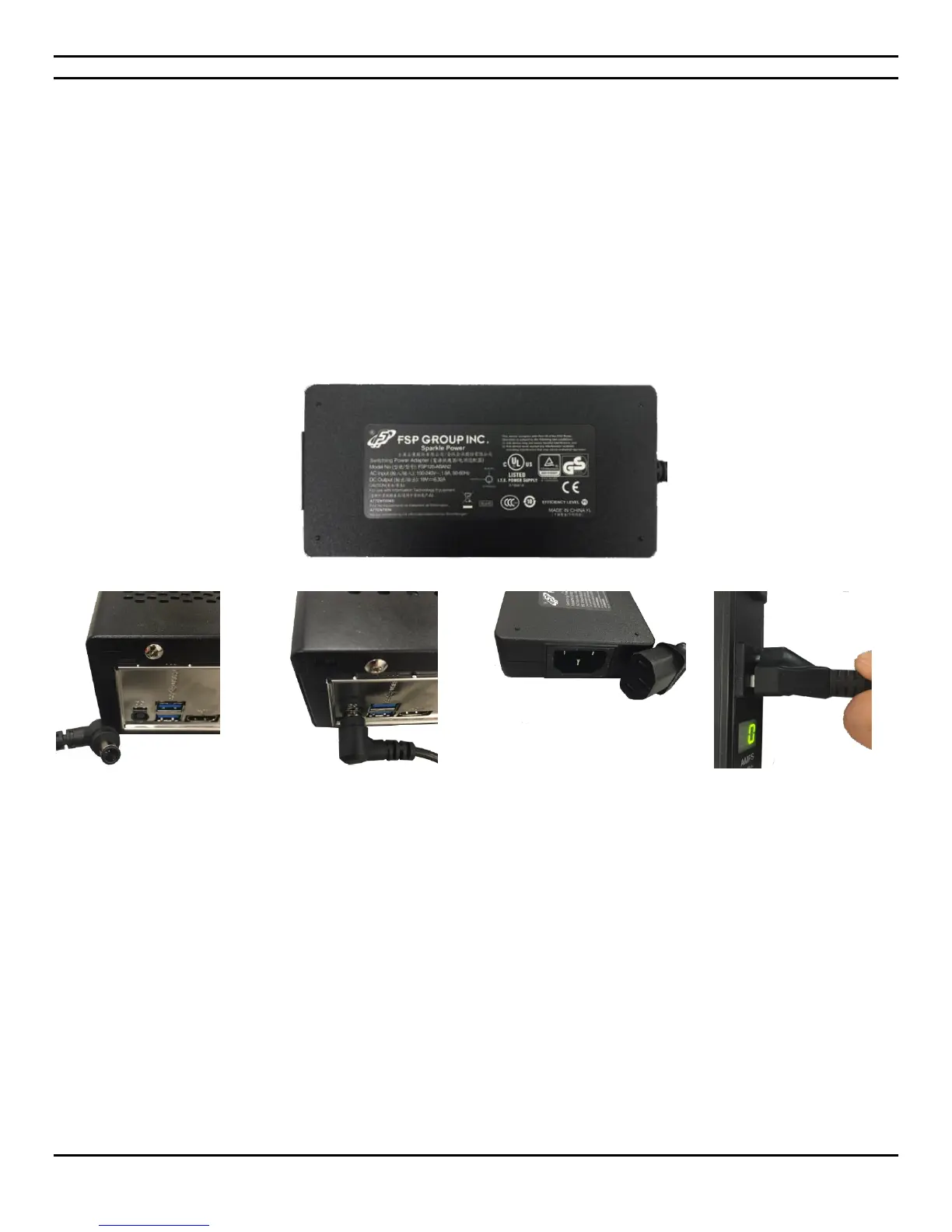 The power supply input should be 120 V, 1.8 A and 60 Hz. The output is 19 V DC 6.32 A.