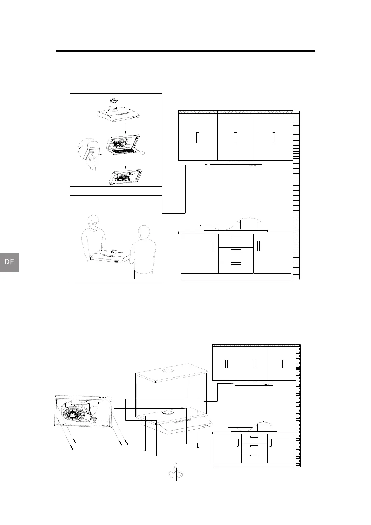 stellen Sie dann die Dunstabzugshaube unter den Schrank.