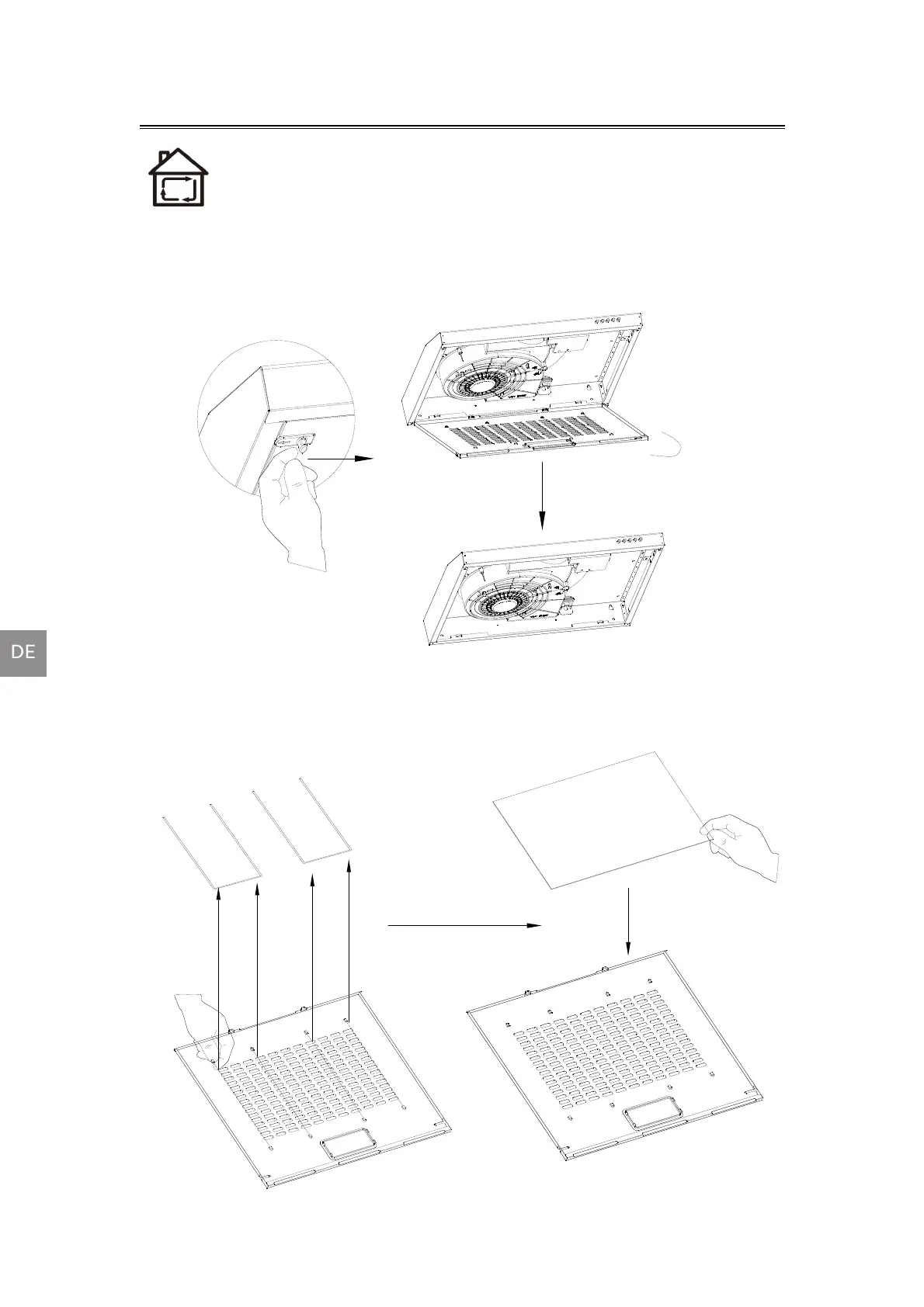 Um den Kohlefilter zu montieren, sollte zuerst der Fettfilter entfernt