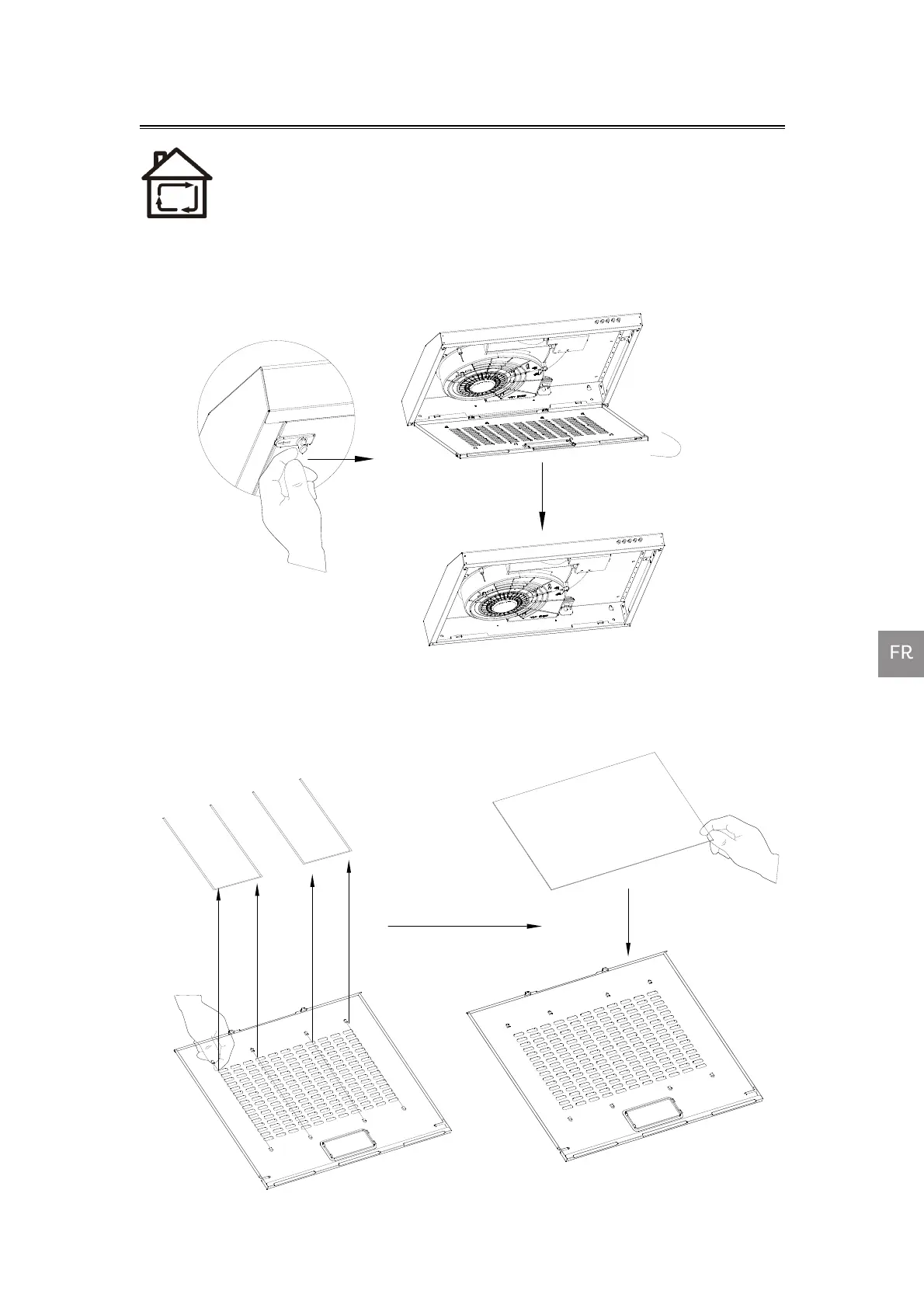 filtre à graisse. Appuyez sur le verrou et tirez-le vers le bas.