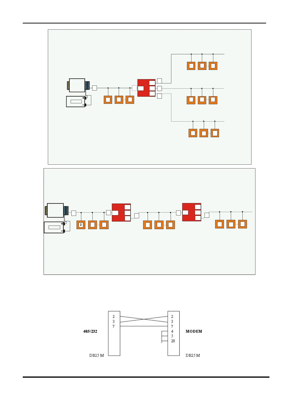 The figure shows a system which requires a RS 485 serial line with several branch loops(“Star”