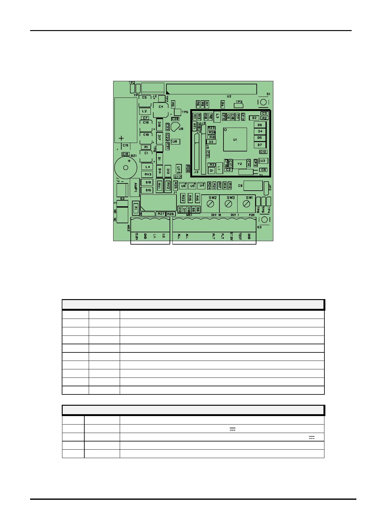 Layout of connectors, jumpers, LED and presets on receiver board
