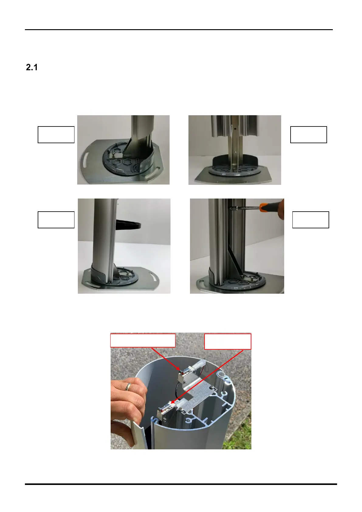 In the upper part of each column there are two serial switches (tamper). The one on the side