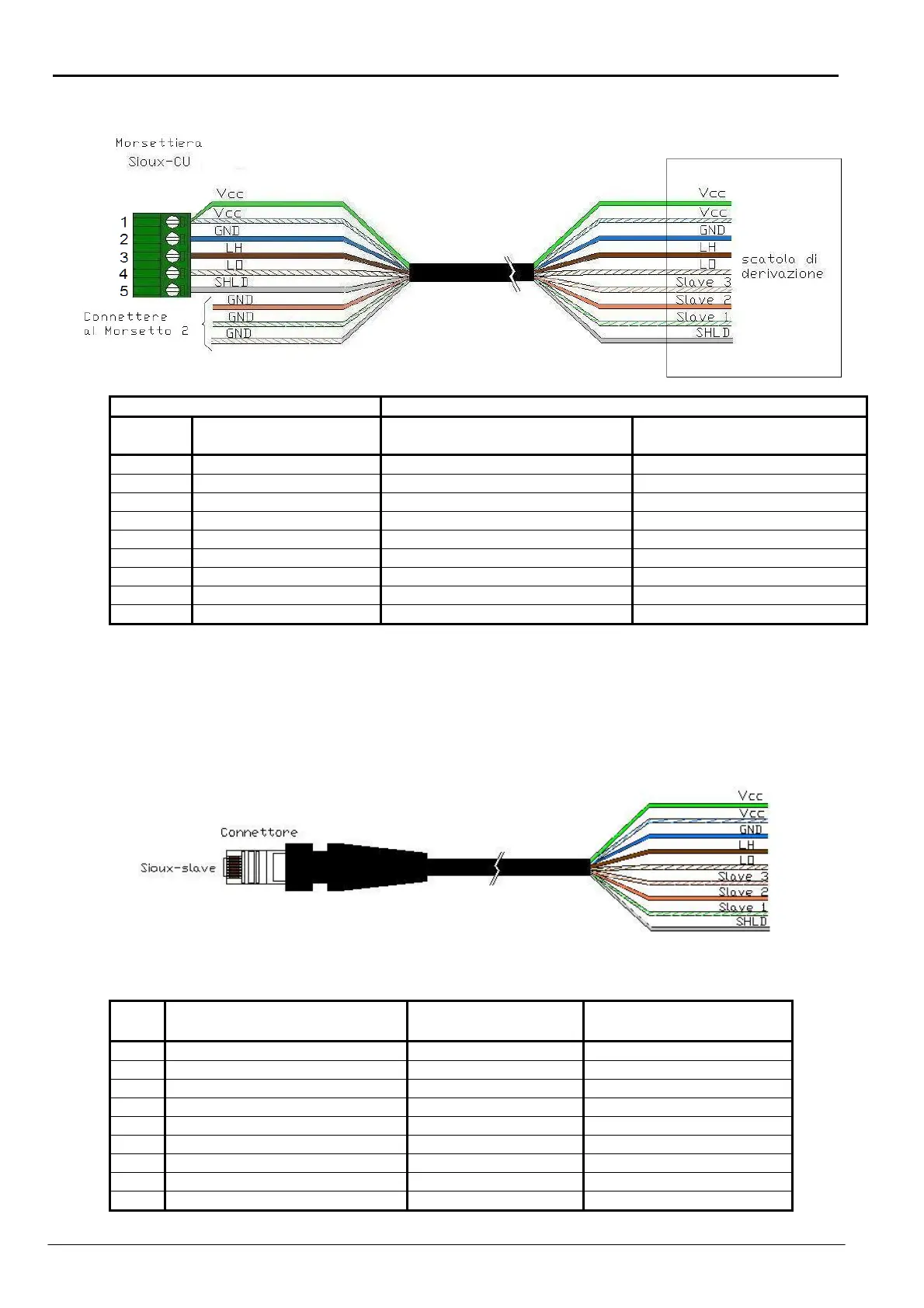 N.B. Utilizzando cavi precablati, verificare la corrispondenza dei colori con la
