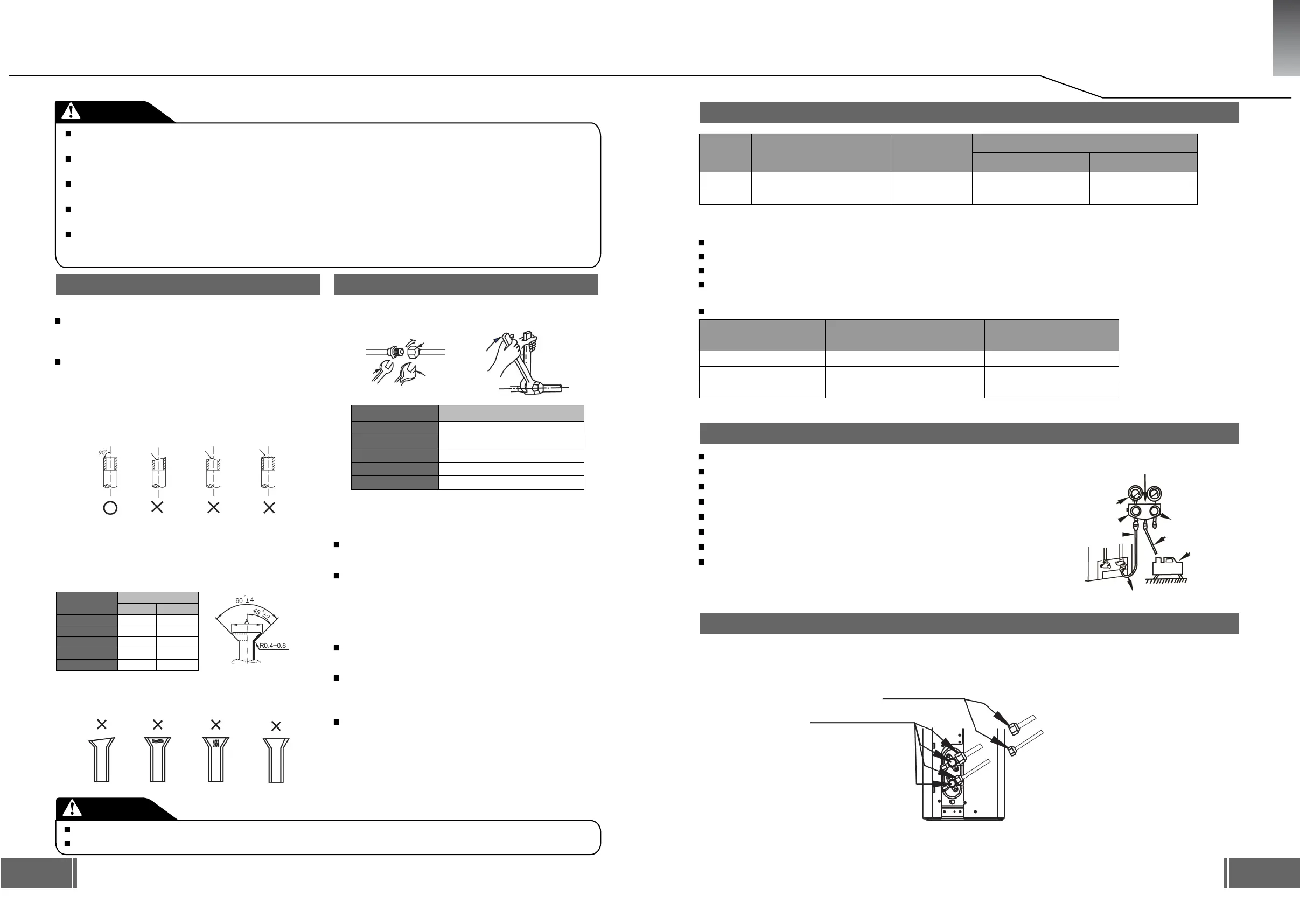 ejemplos de tuberías incorrectamente abocardadas.