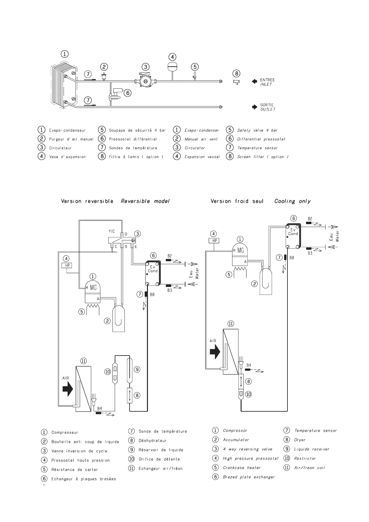 CIAT AQUALIS 20 - Schéma de Principe du Module Hydraulique; Schéma de Principe Frigorifique