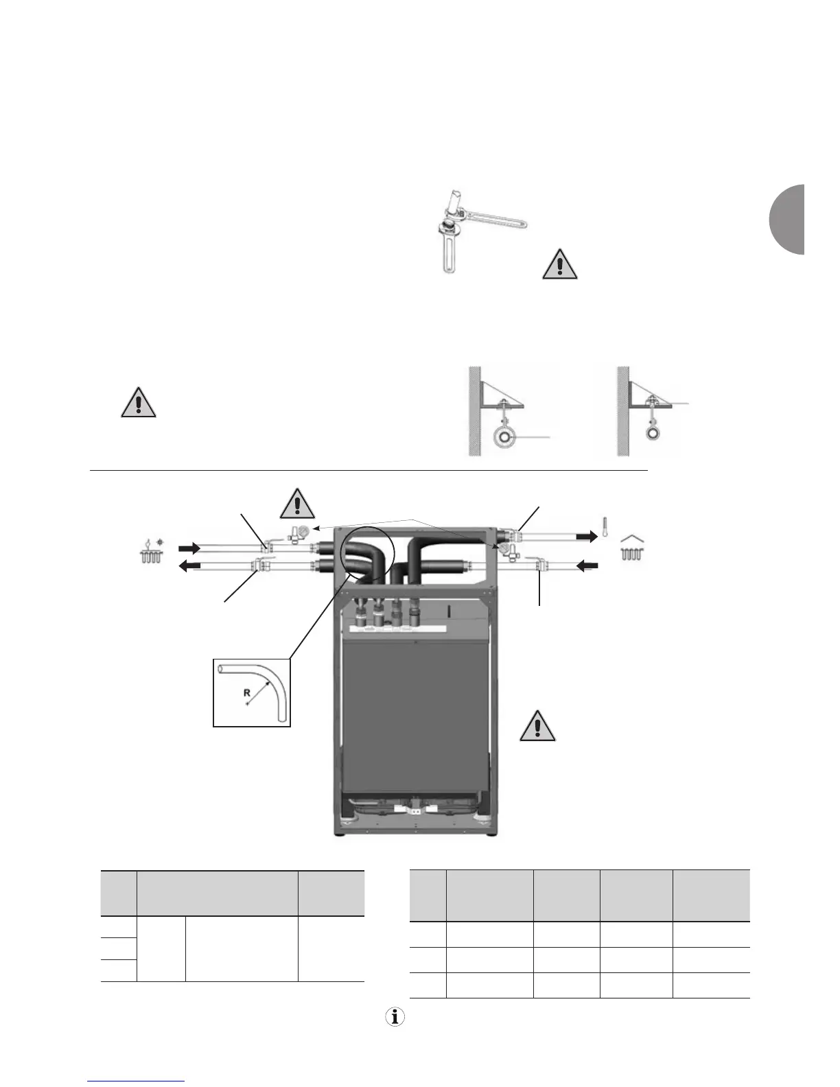 System pipe diameters and nominal flow ratesUnit outlet pipe diameters