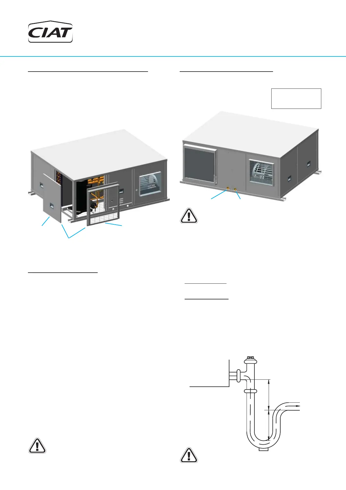 All models are provided with two condensates drain pans, one in the