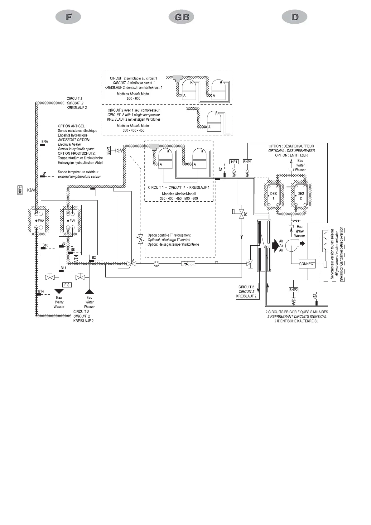 circulation et l'asservissement eau glacée.
