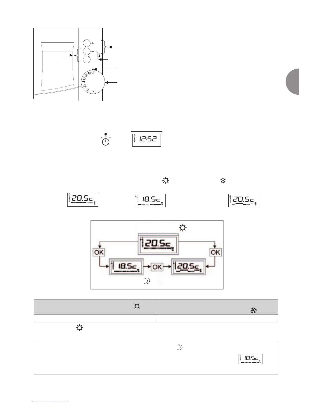 When the selector is positioned in heating mode ( ) or cooling mode ( ) (depending on the