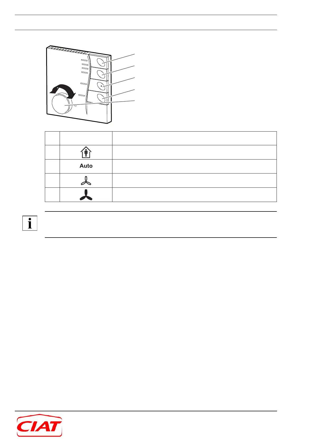 5 Fan on, increase speed. Four green LEDs: Min. to max. fan level dis-