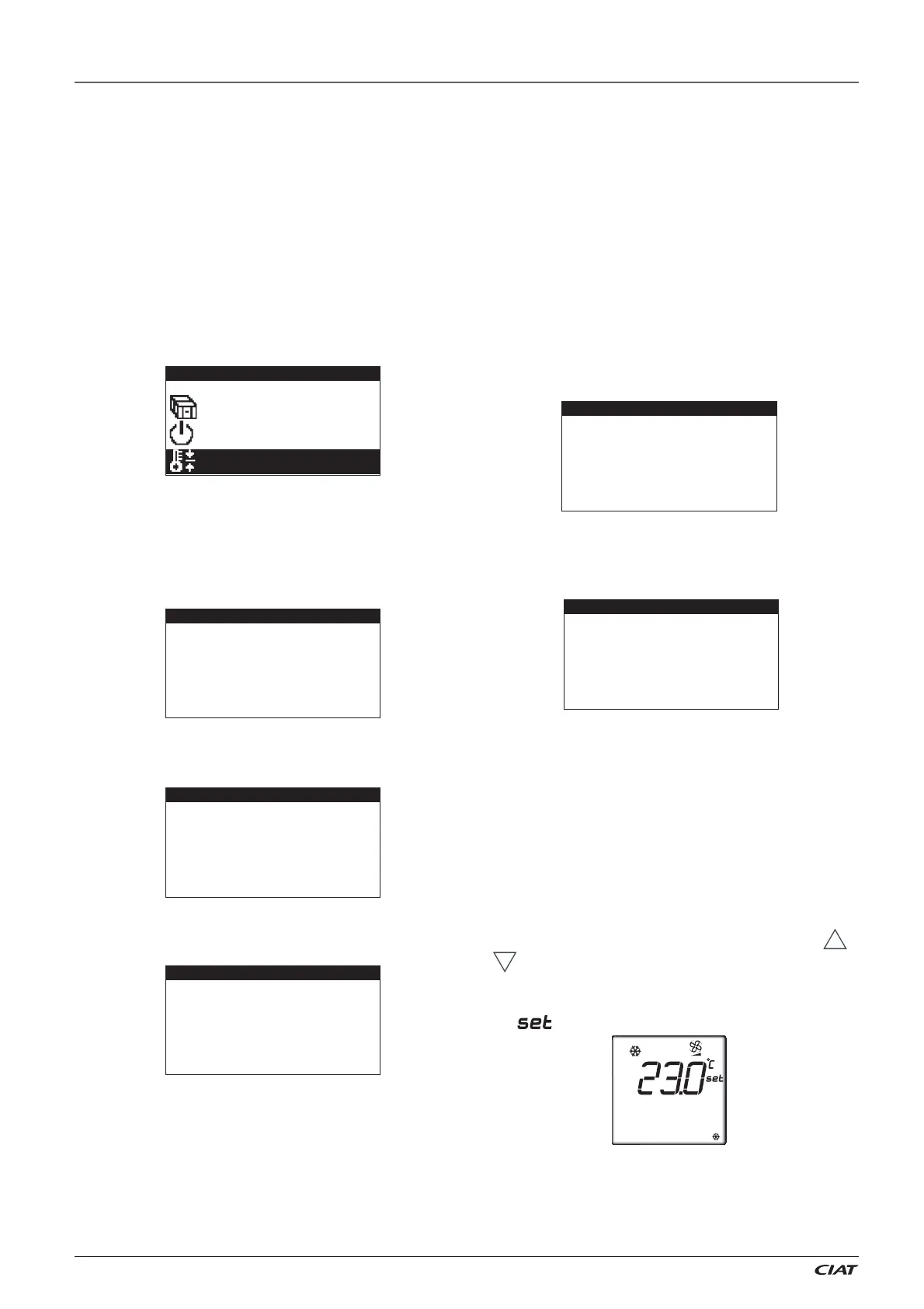 On the fi rst screen of this group, the setpoints of temperature