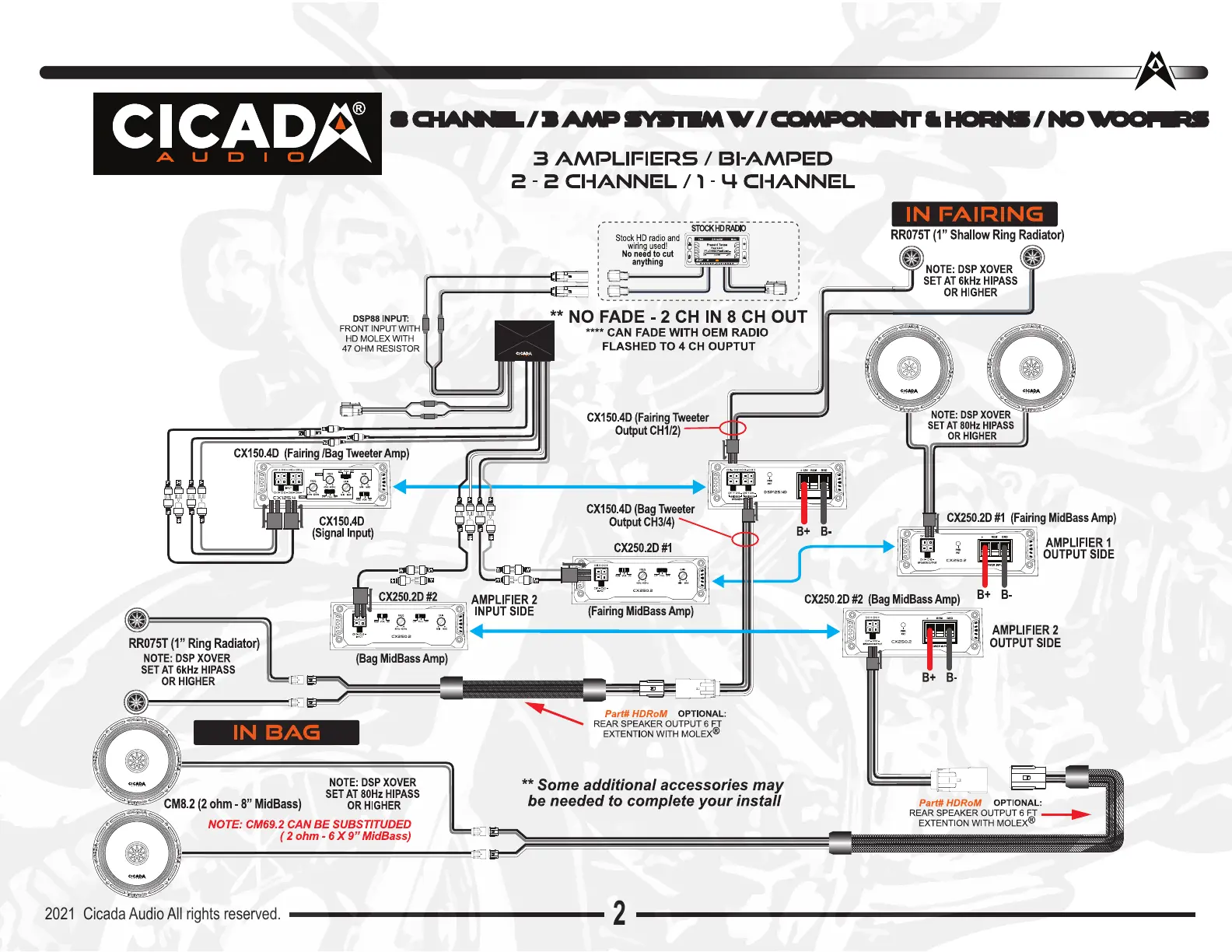 8 CHANNEL / 3 AMP SYSTEM W / COmponent & HORNS / NO WOOFERS