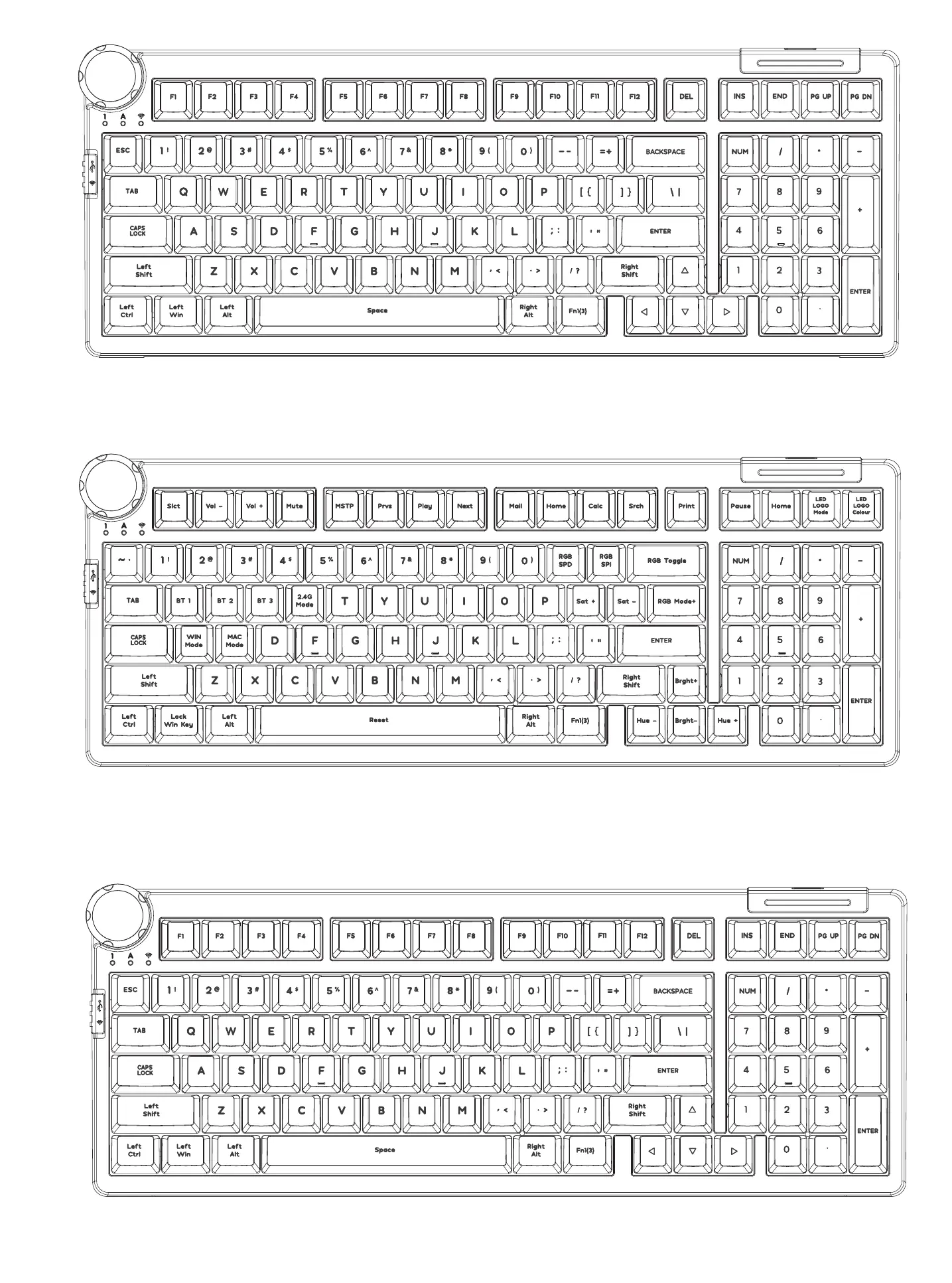 FN+Space: Long press FN+Space for 3 seconds to reset the