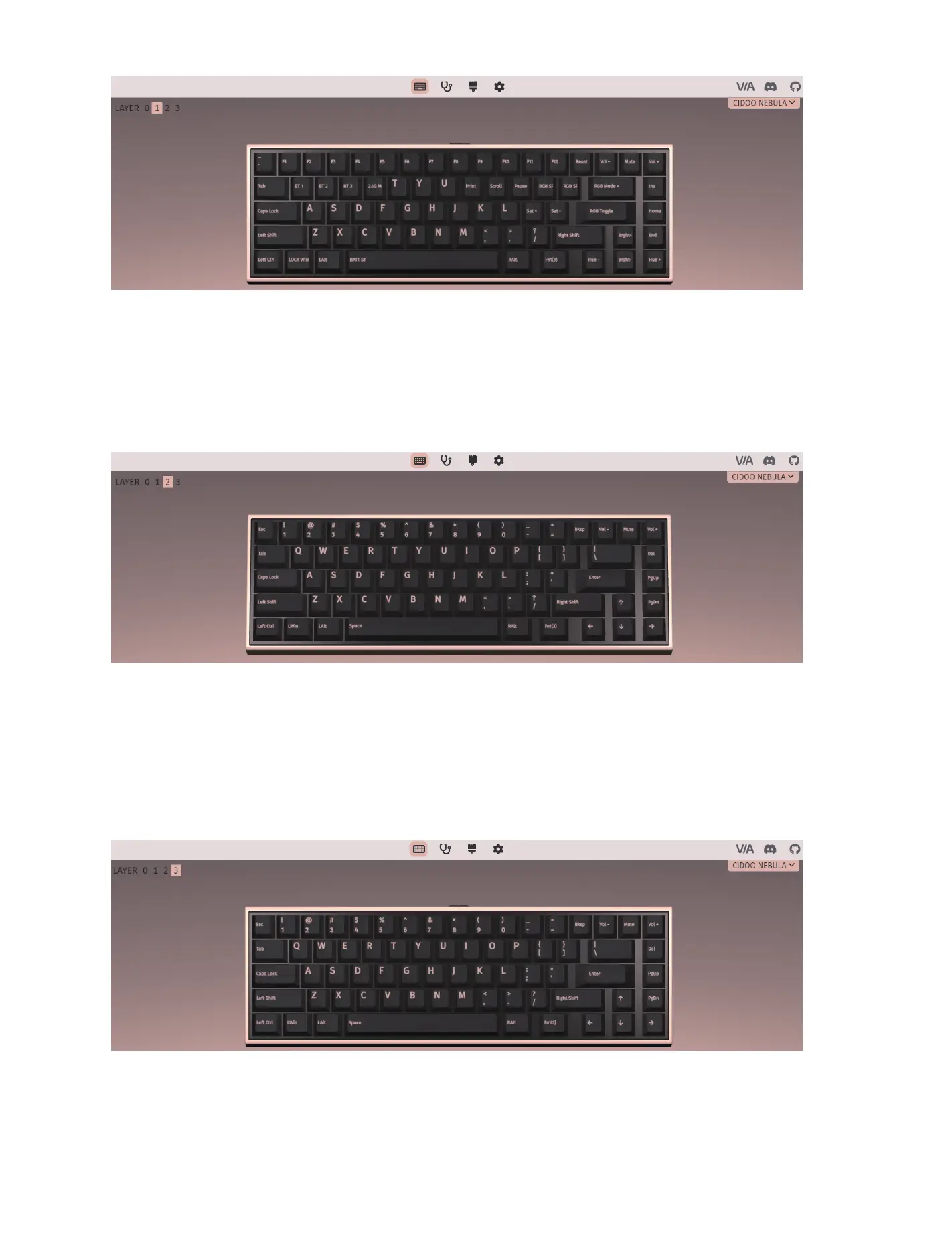 CIDOO NEBULA default customized 0-3 layer keyboard layout.