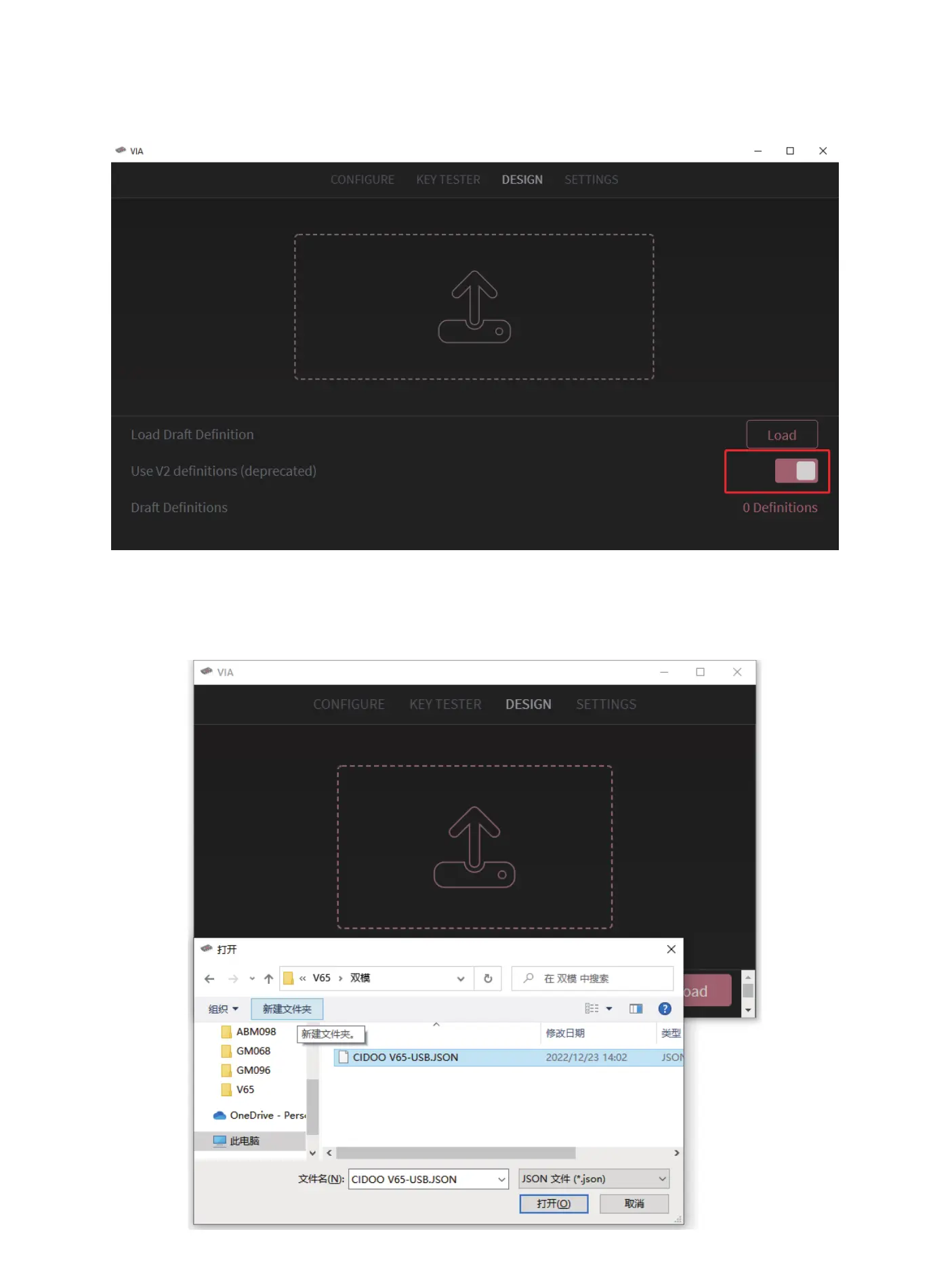2.从赤度官网下载CIDOO V65 json文件并上传到VIA软件,