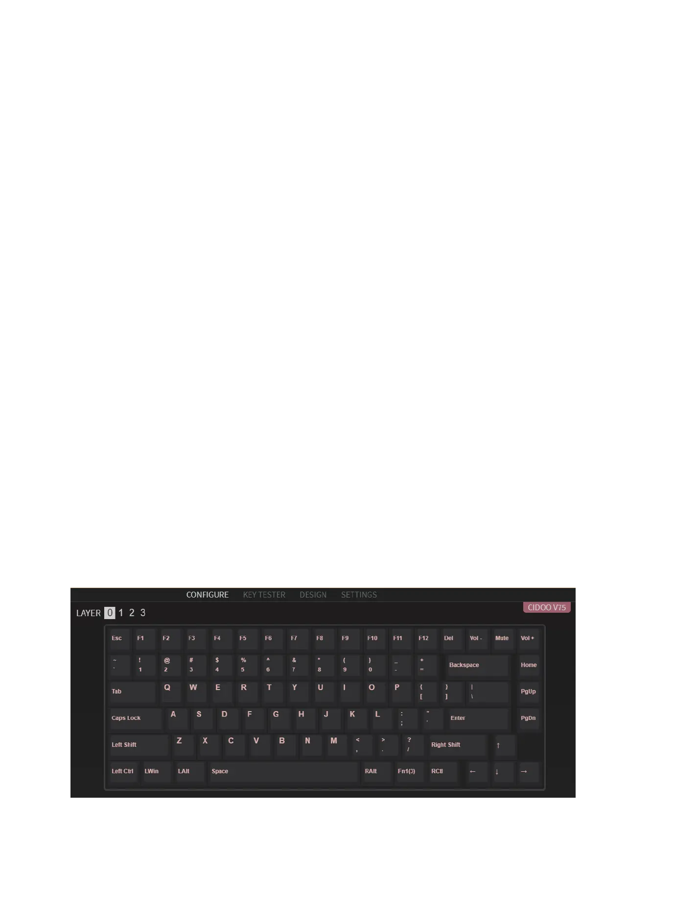 CIDOO V75默认配置了0-3层4个层级,每个单独的按键都可以拥有多个功能.