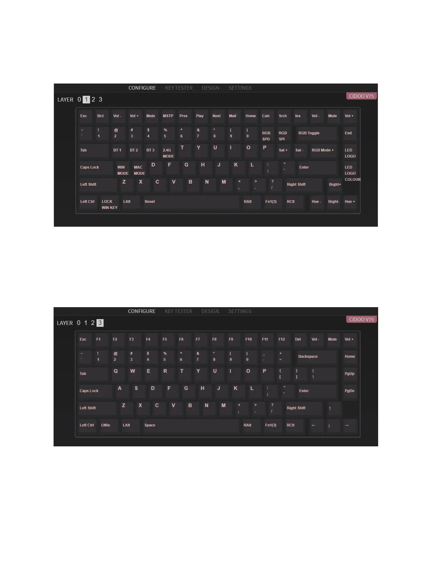 CIDOO V75默认配置了0-3层4个层级,每个单独的按键都可以拥有多个功能.