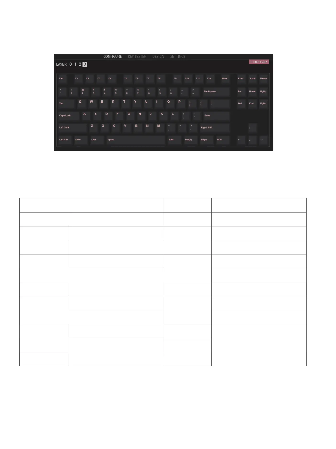 CIDOO V87 Pro - Layer 3: MO(3) Activation; Keys Descriptions Table