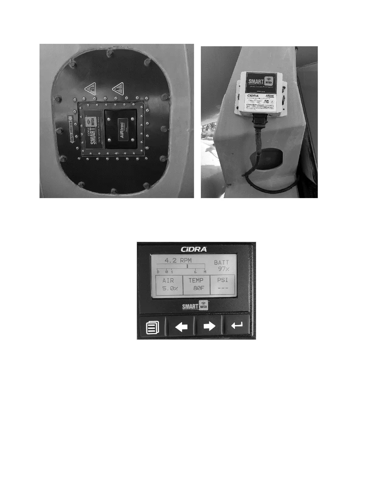 CiDRA SMART HATCH - Figure 1: Hatch-Mounted Sensor; Figure 2: Receiver Module; Figure 3: In-Cab Display
