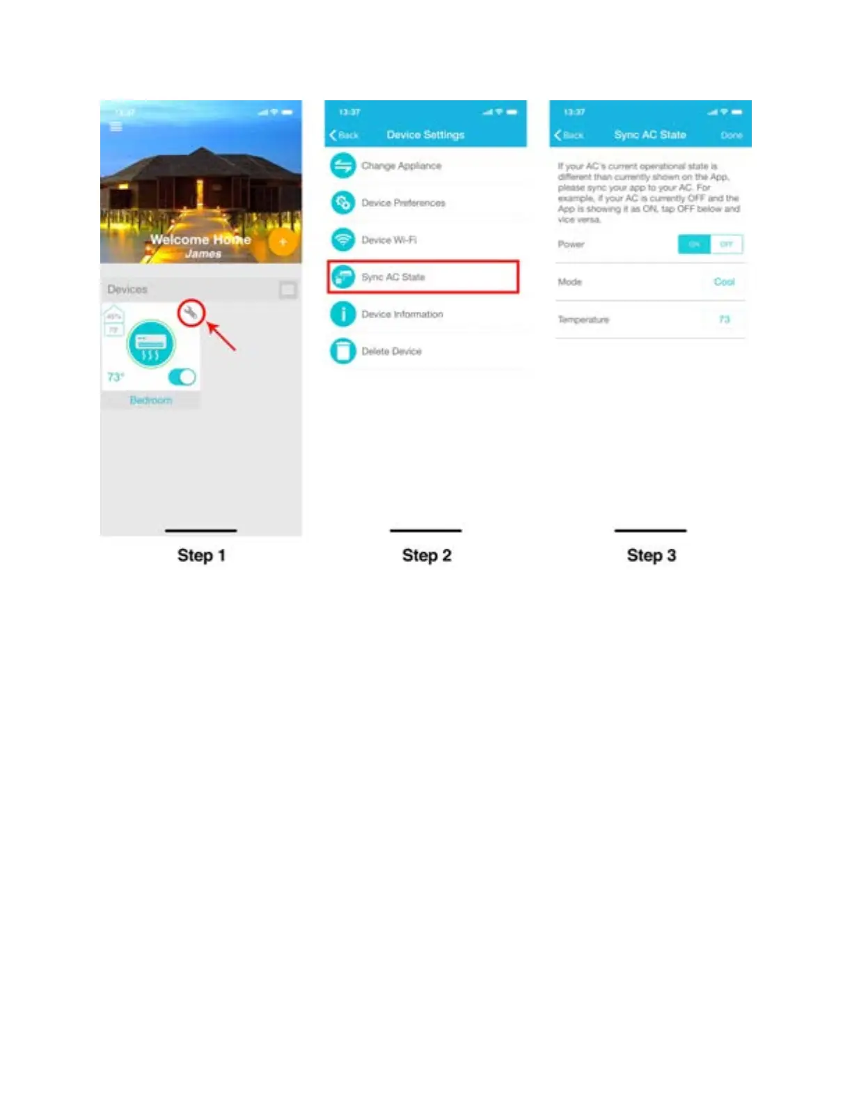 Step 1: Tap on ‘Wrench’ of your registered Device.