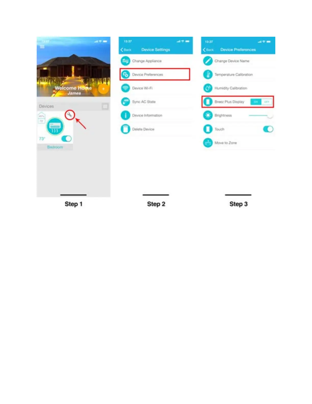 2. Adjusting the brightness of Device (Breez Plus) Screen