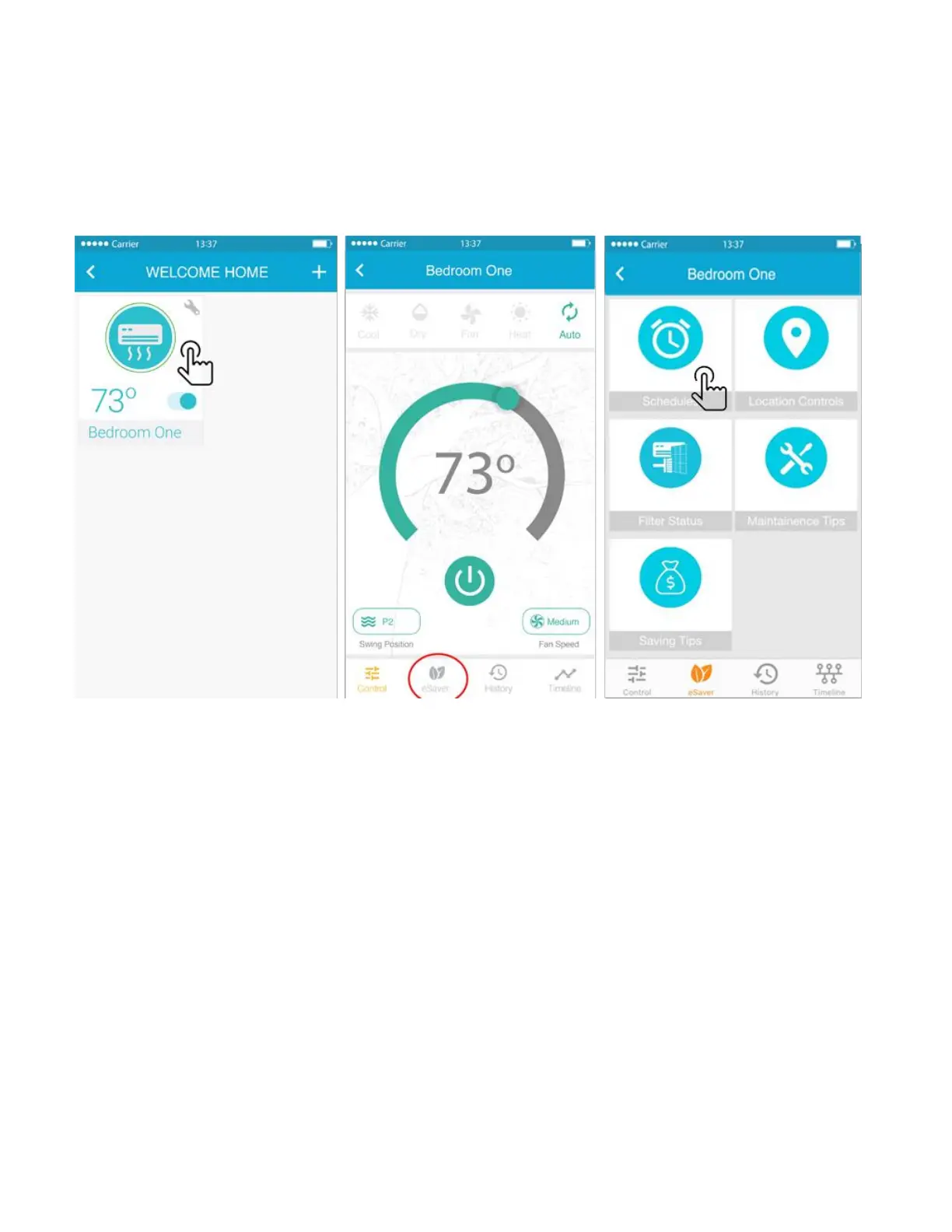 • Tap on “eSaver” in the navigation bar and press the “Schedules option”