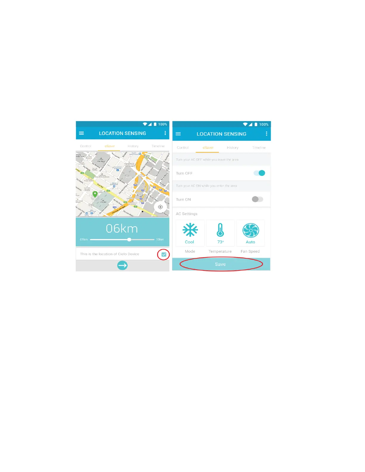 • Set a Geo-Fence range for your Air-Conditioner / Heat Pump between 1km to 10 Km. Entering or