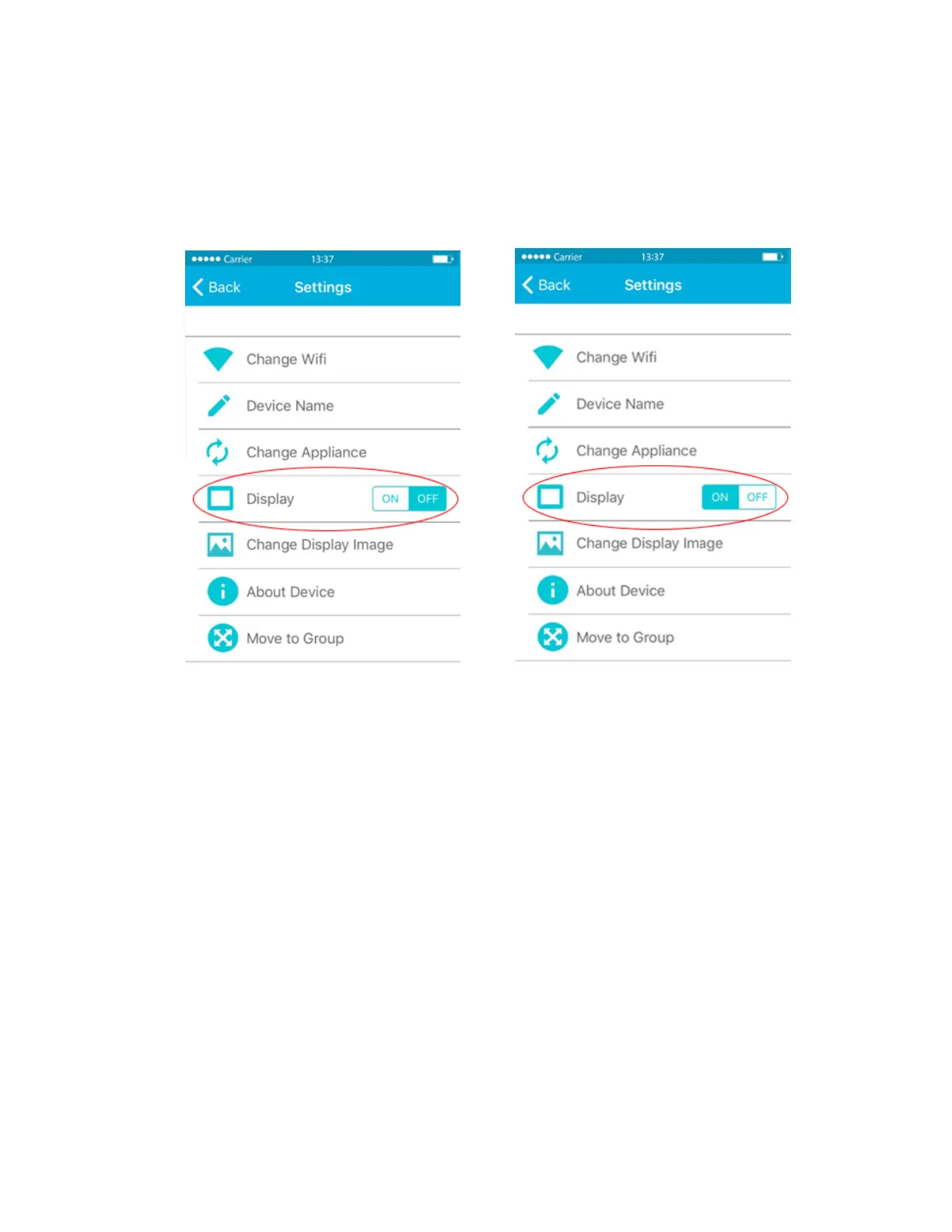 Cielo Breez - Display Screen Management (iOS); Step 10 b: Turning OFF Display (iOS)