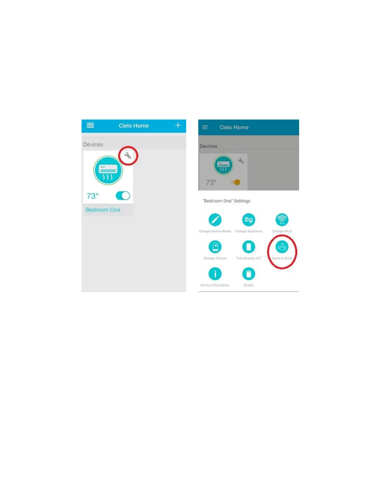 Zone. Press "Move to Zone". Cielo Home App will prompt you to create a Zone of your choice. You can