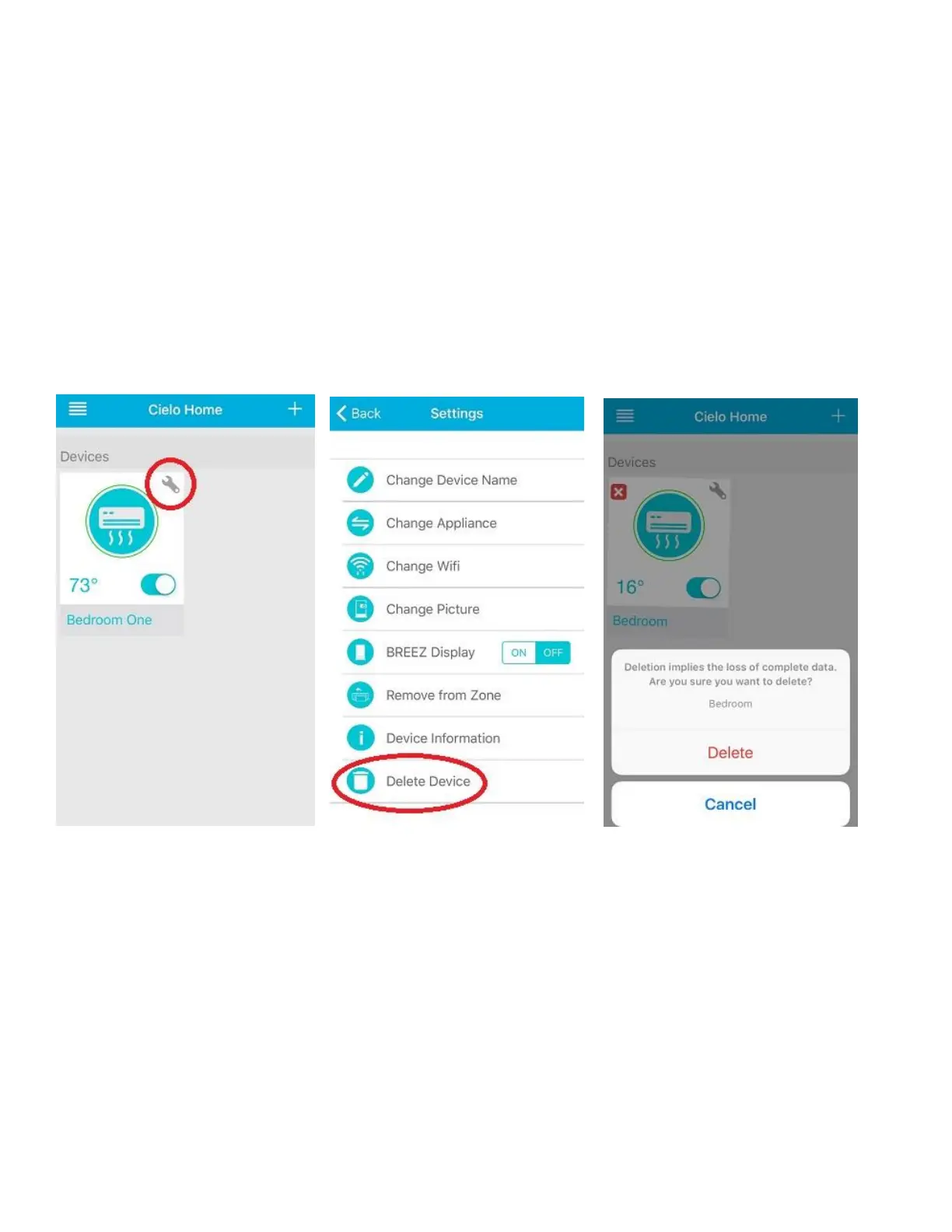 Step 15a: Deleting Cielo Breez from Cielo Home App (for iOS