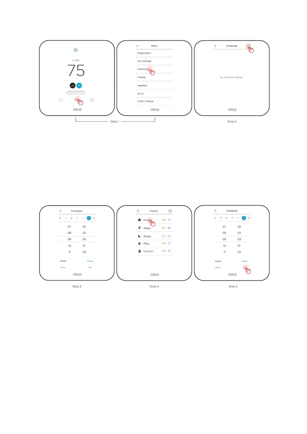 Step 4: Select the 'Preset' you want to add to your schedule, in this case, 'Home.'