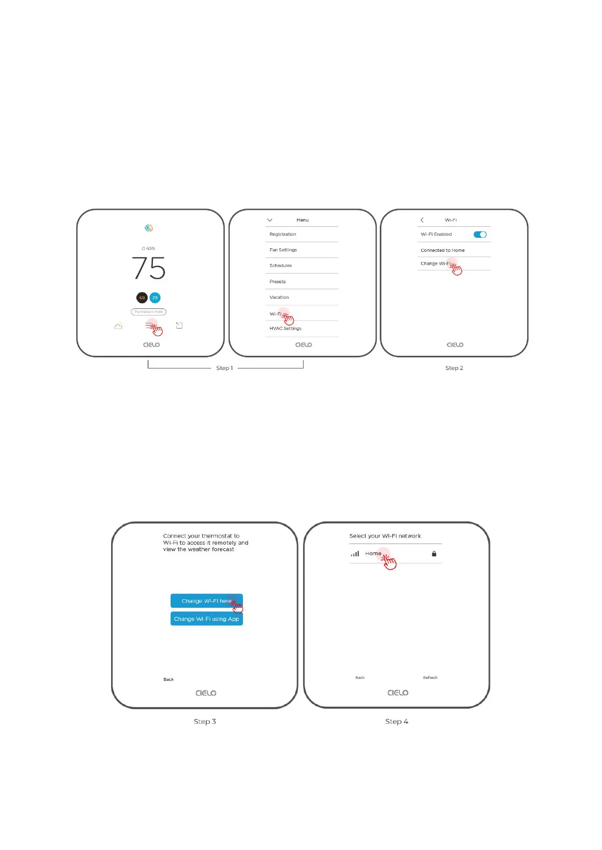Step 3: You can either change Wi-Fi on the device or use the Cielo Home app.
