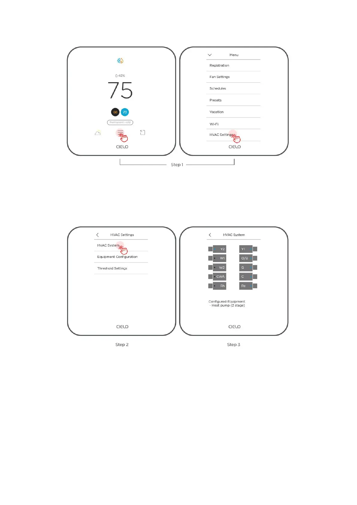 Step 1: Go to 'Menu' and select 'HVAC Settings'.