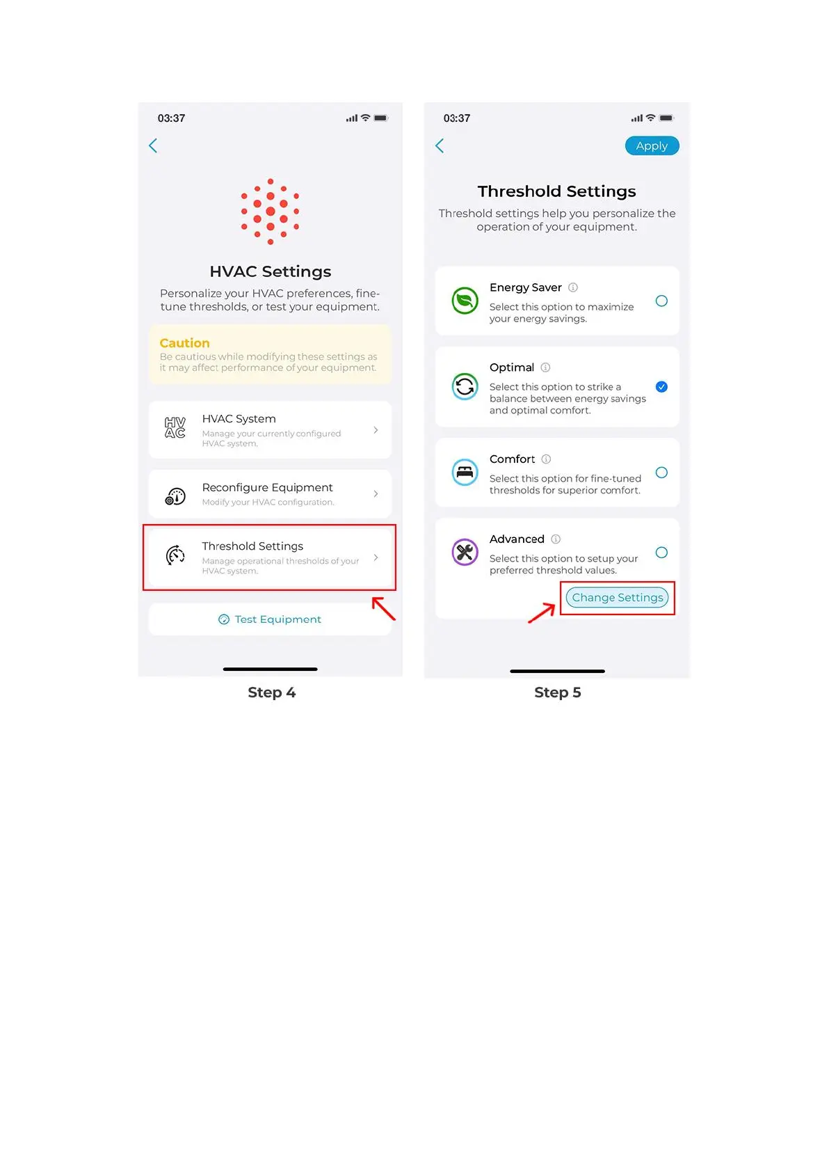 Step 6: Tap on ‘Heat Pump’ under ‘Equipment Thresholds’.
