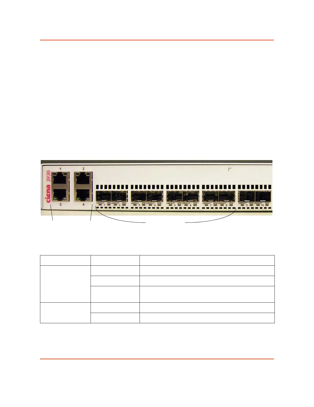 at the bottom of the SFP connectors and are labeled LNK/ACT and SPD. See