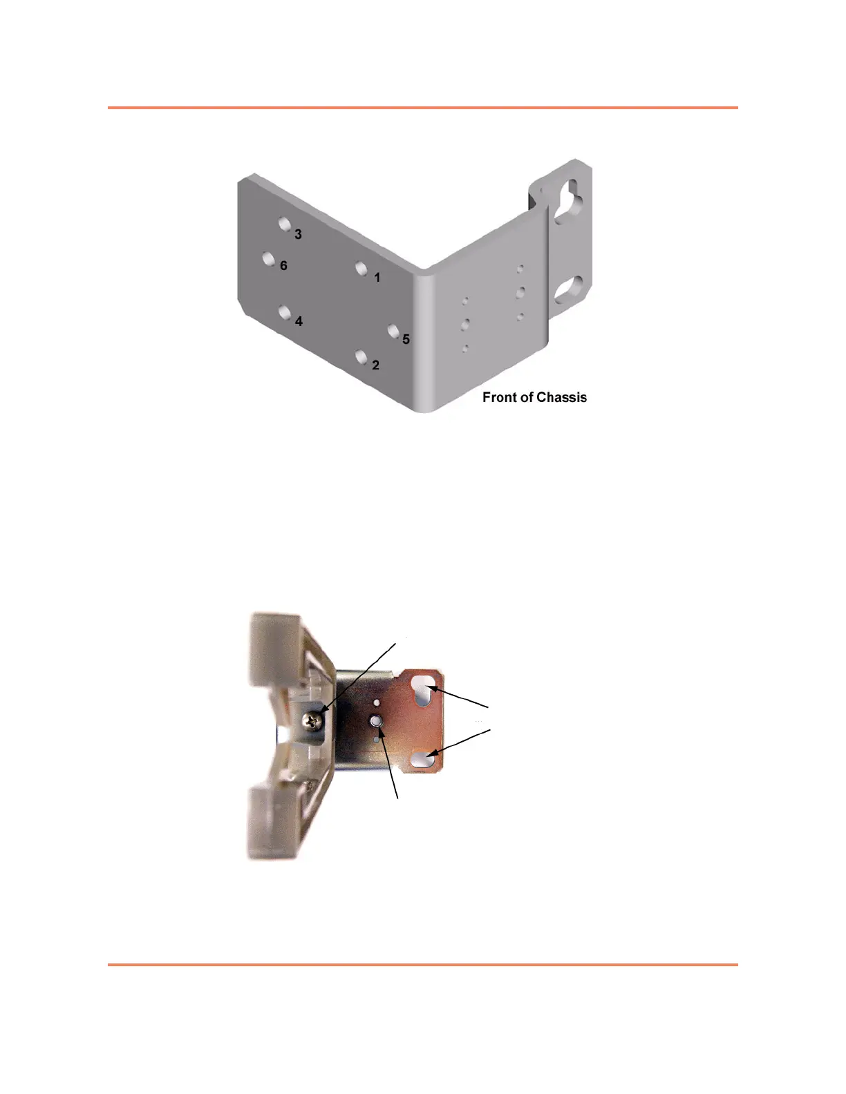Front view of right bracket, showing mounting holes