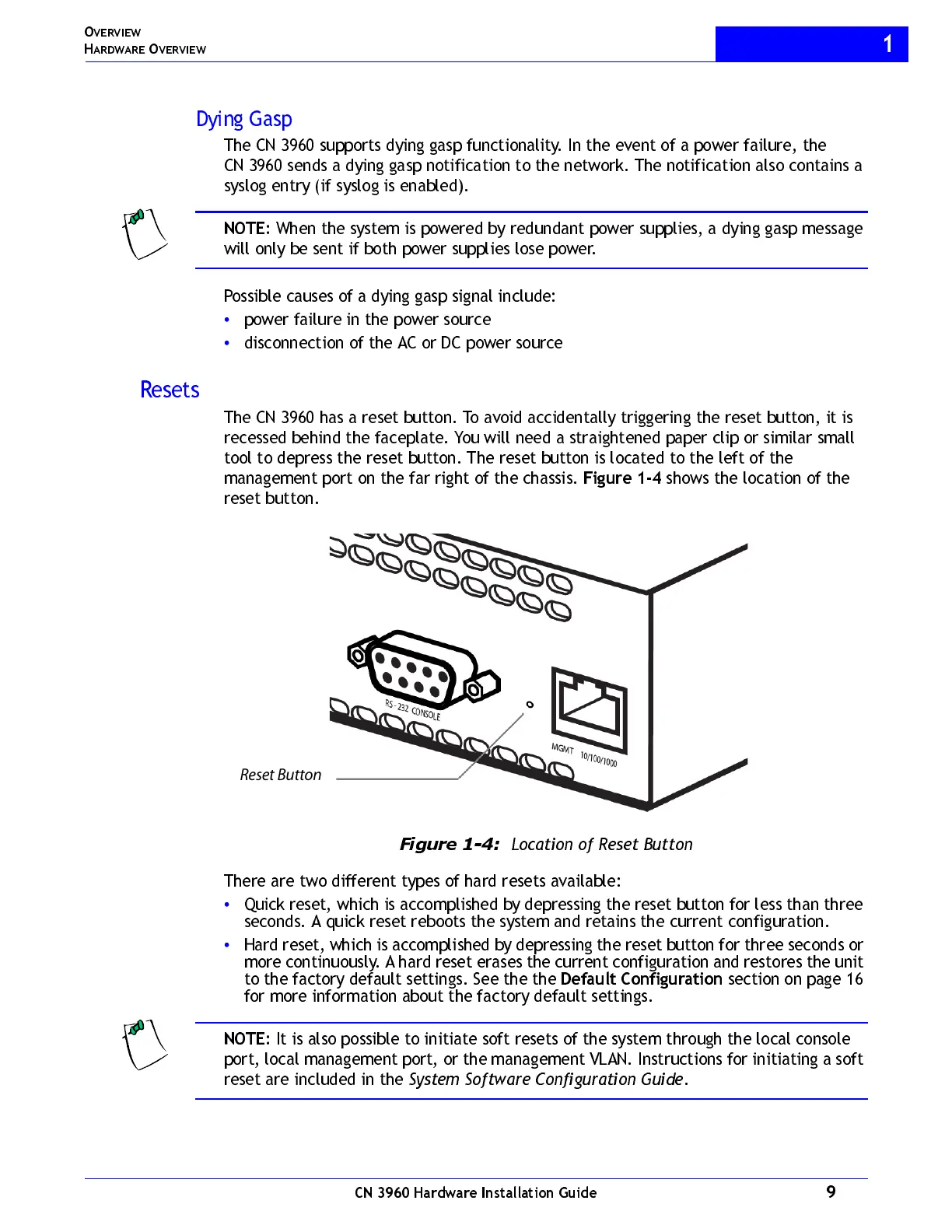 The CN 3960 supports dying gasp functionality. In the event of a power failure, the