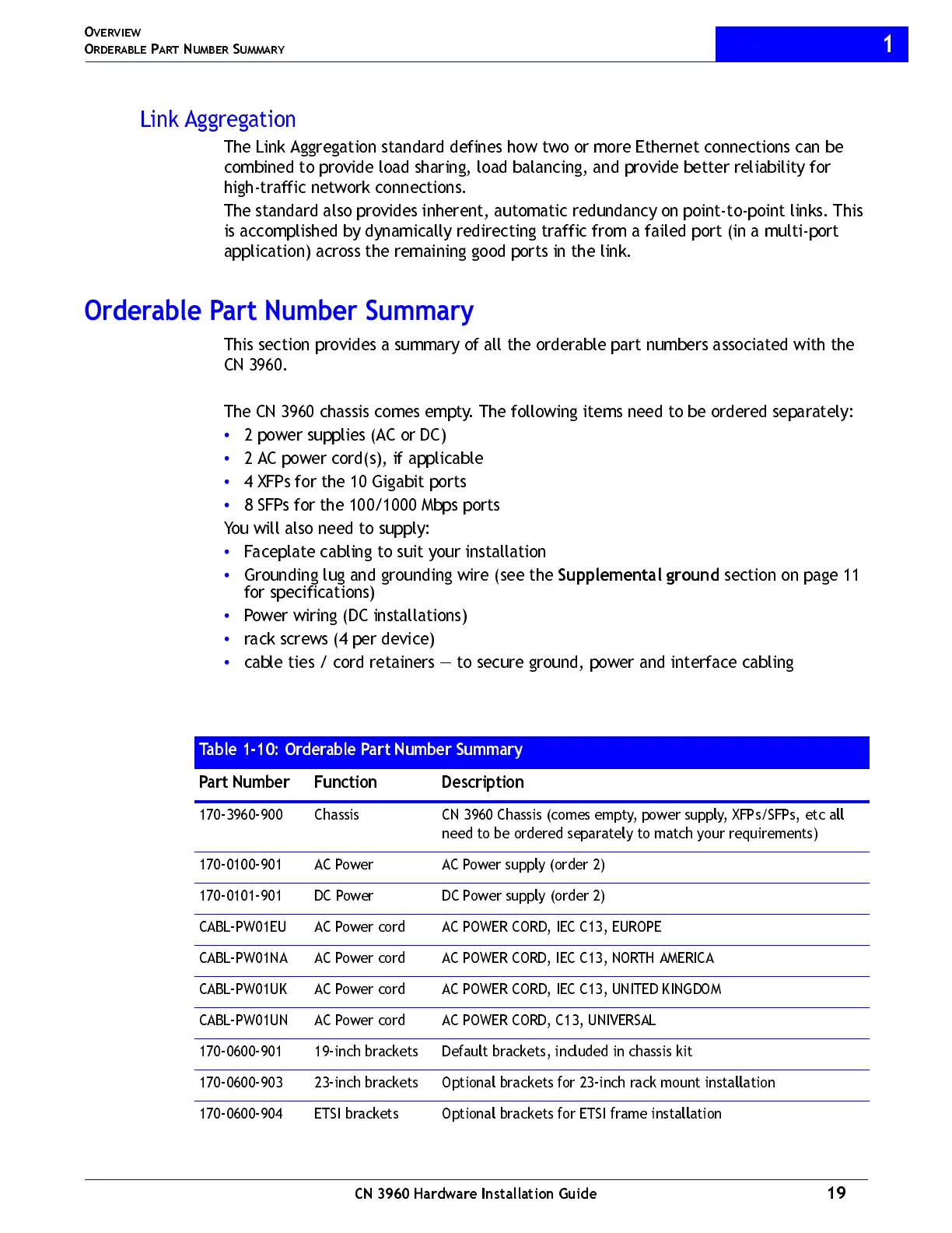 Table 1-10: Orderable Part Number Summary
