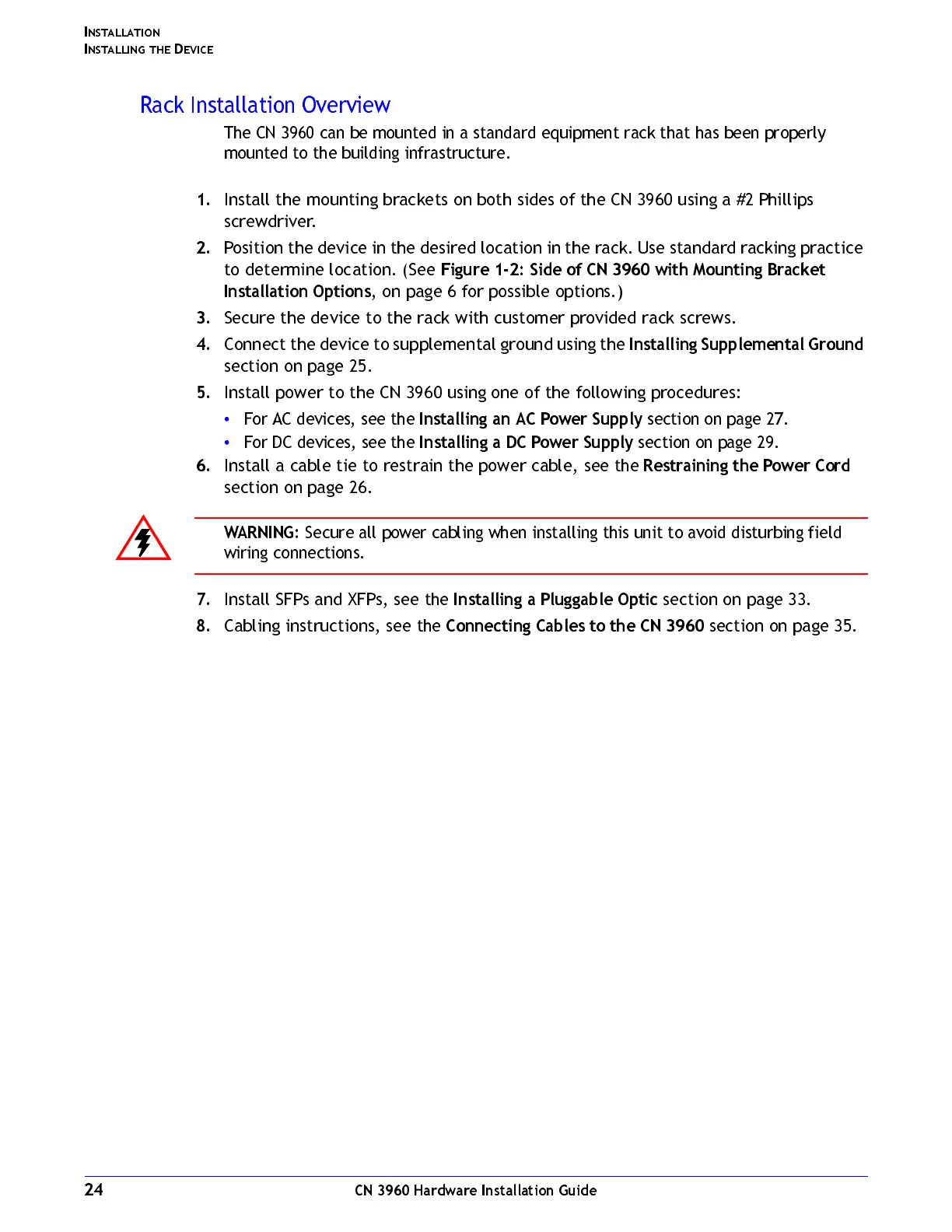 Install power to the CN 3960 using one of the following procedures: