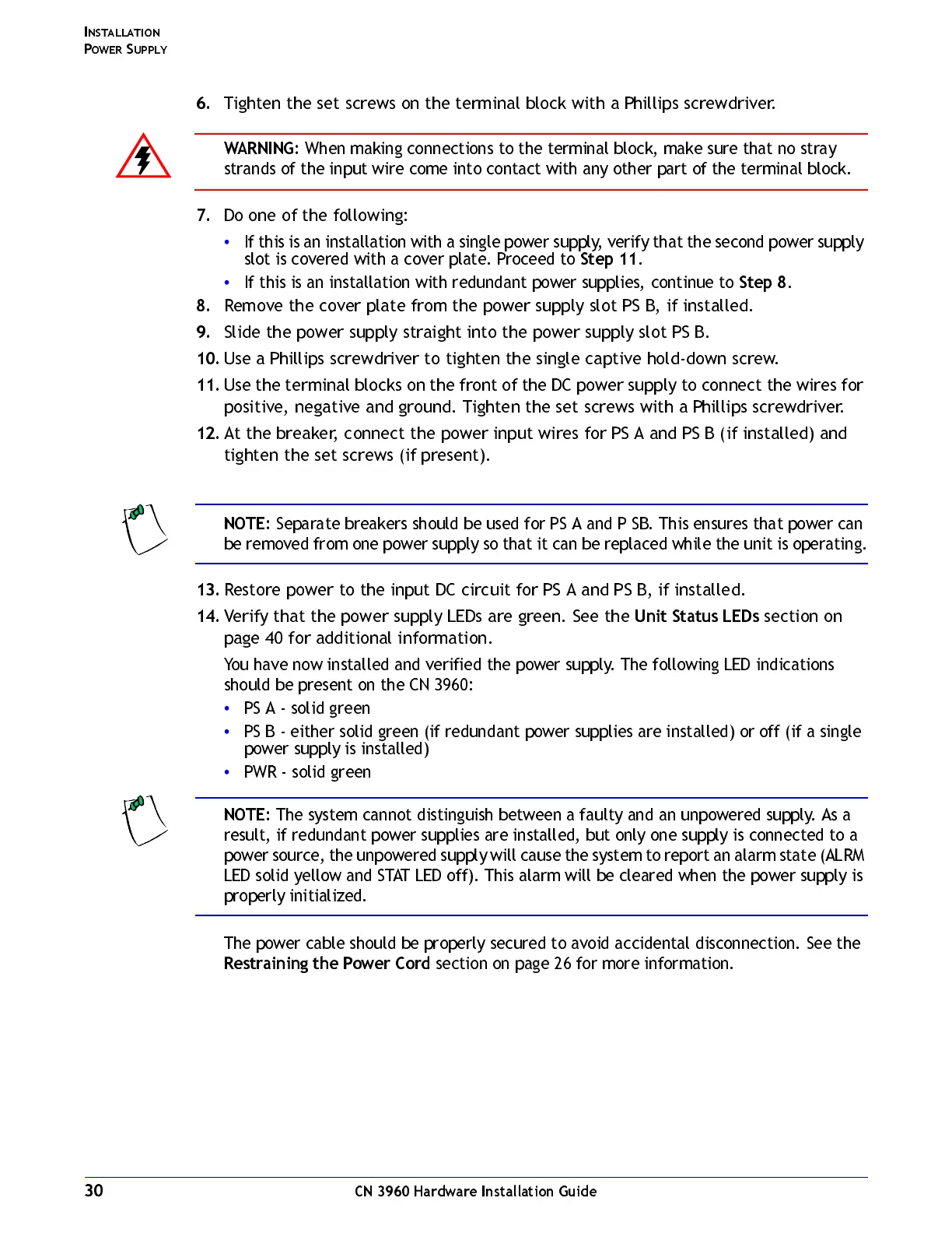 You have now installed and verified the power supply. The following LED indications