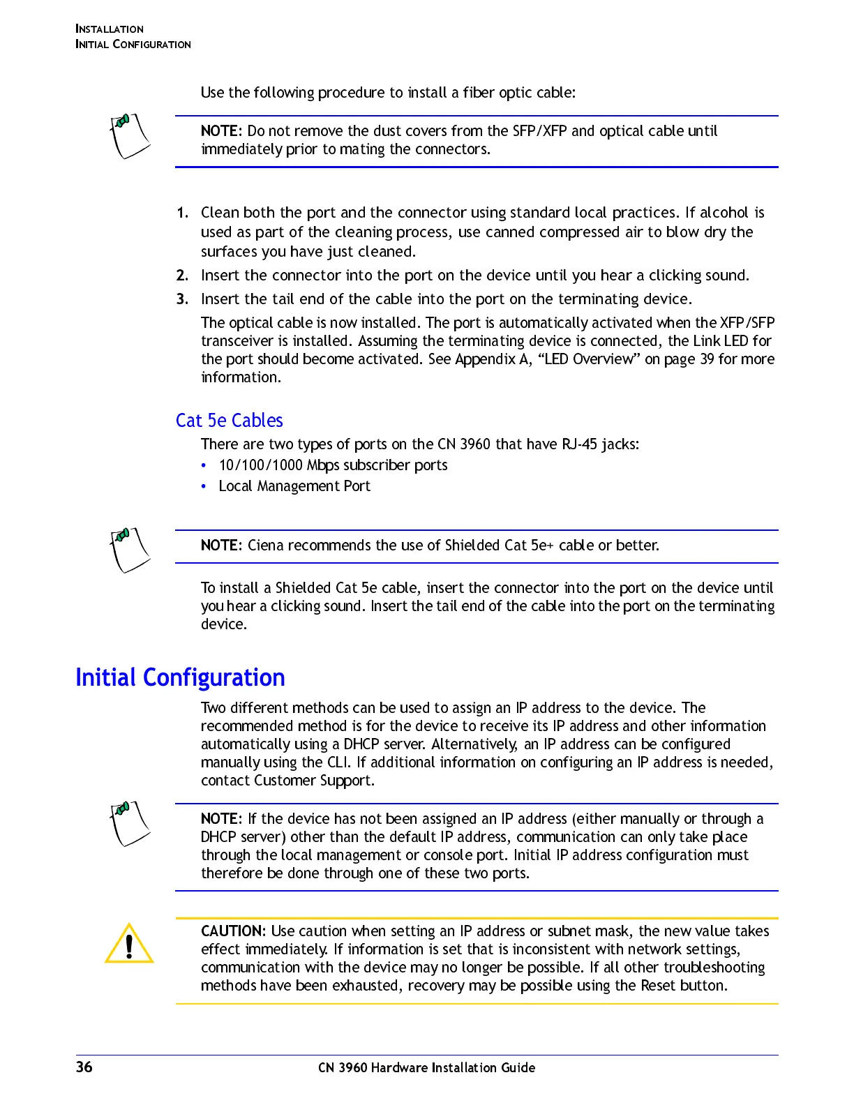 Ciena recommends the use of Shielded Cat 5e+ cable or better.