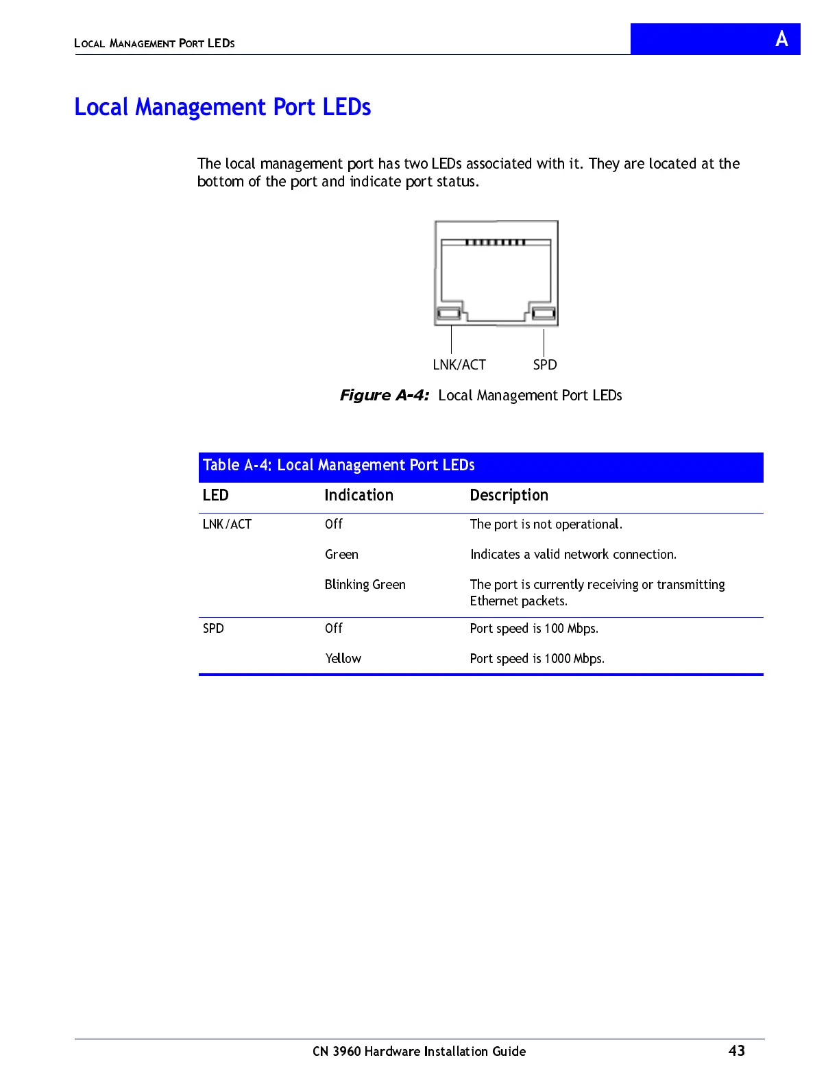 Table A-4: Local Management Port LEDs