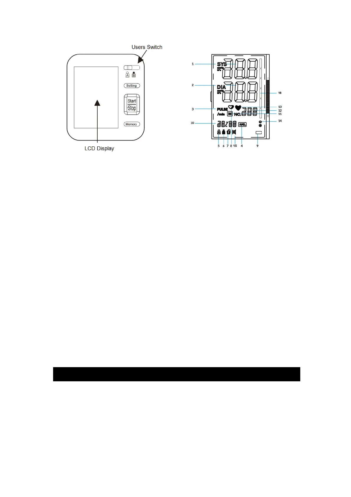 11-Memory symbol; 12-Pulse display 13-Heartbeat symbol