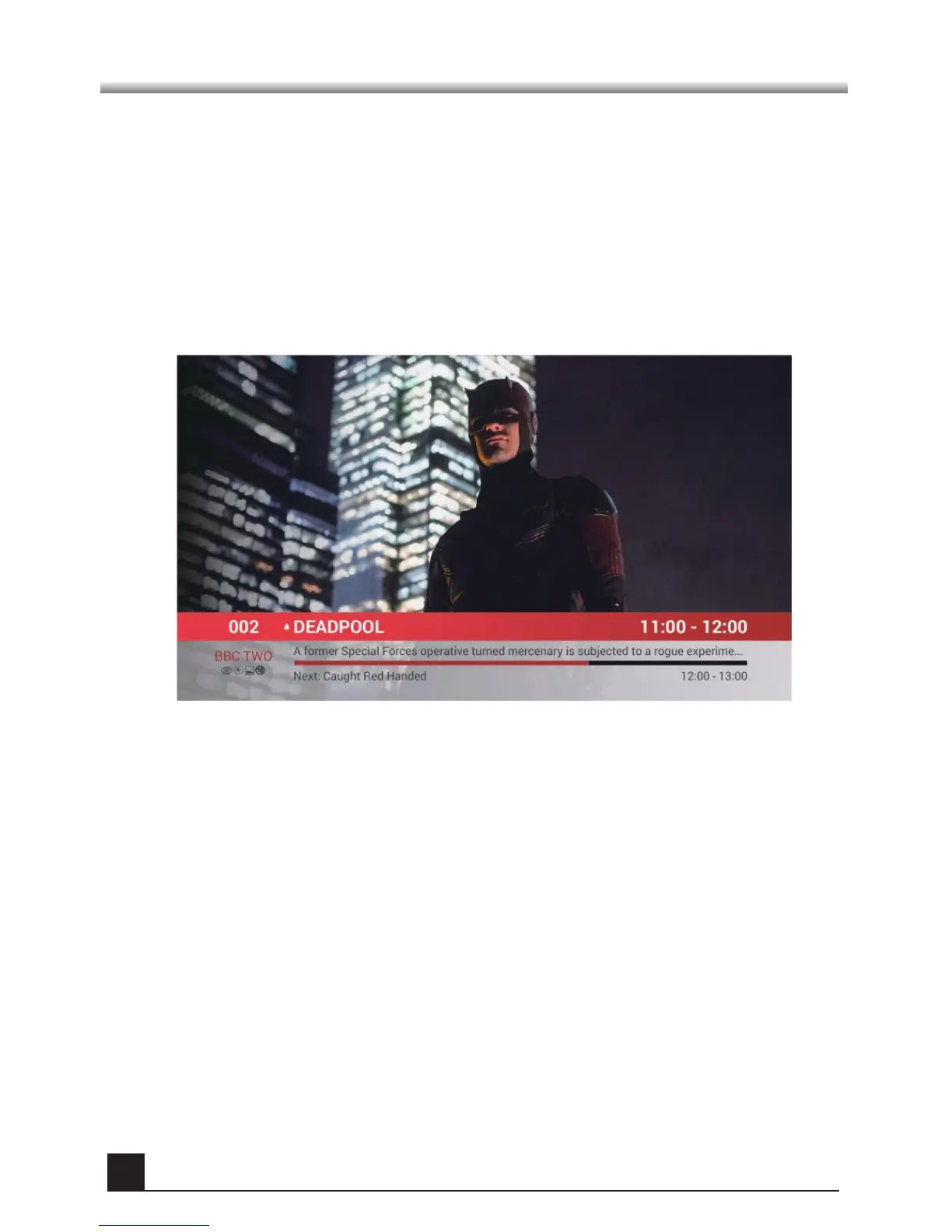 The Channel Bar is displayed when zapping or by pressing the INFO button
