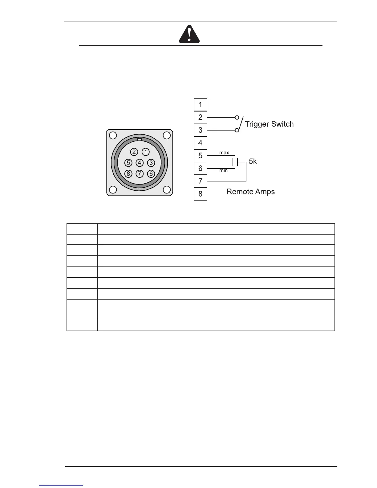The 8 pin Remote Control Socket is used to connect remote control devices to the welding power source.